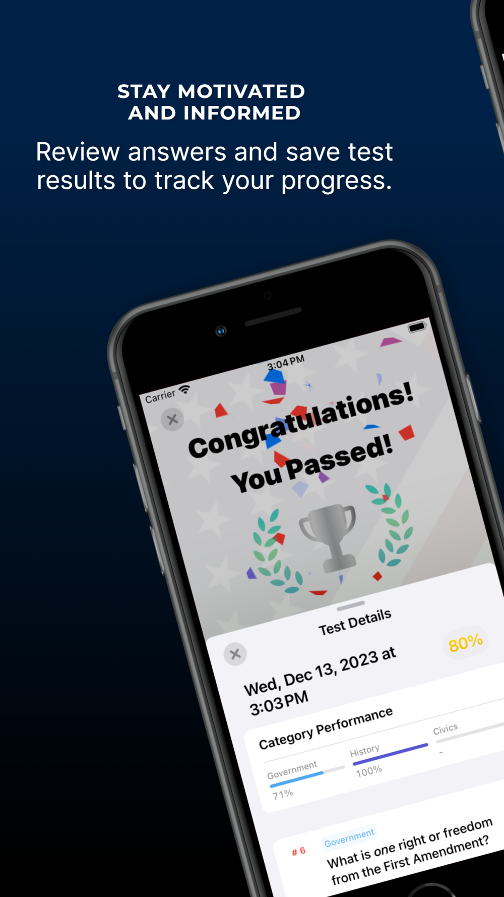 • Take quick, 5-question practice tests using only questions from the Government, History, or Civics categories