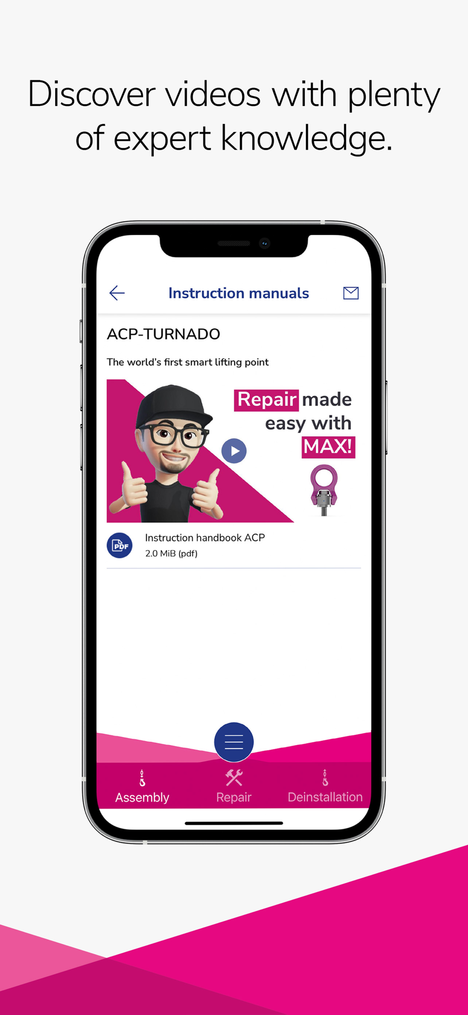 Use BUDDYtron and NFC to help you perform a visual inspection of your lifting means and establish their condition. The app will also provide you with practical tips for assembly, dismantling and repairs. With BUDDYtron, you are holding accumulated lifting knowledge from the market leader RUD in your hand – anytime and anywhere.