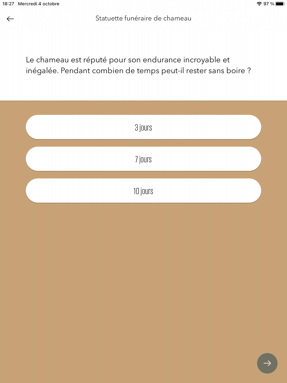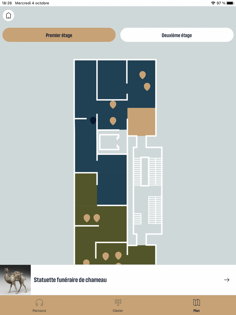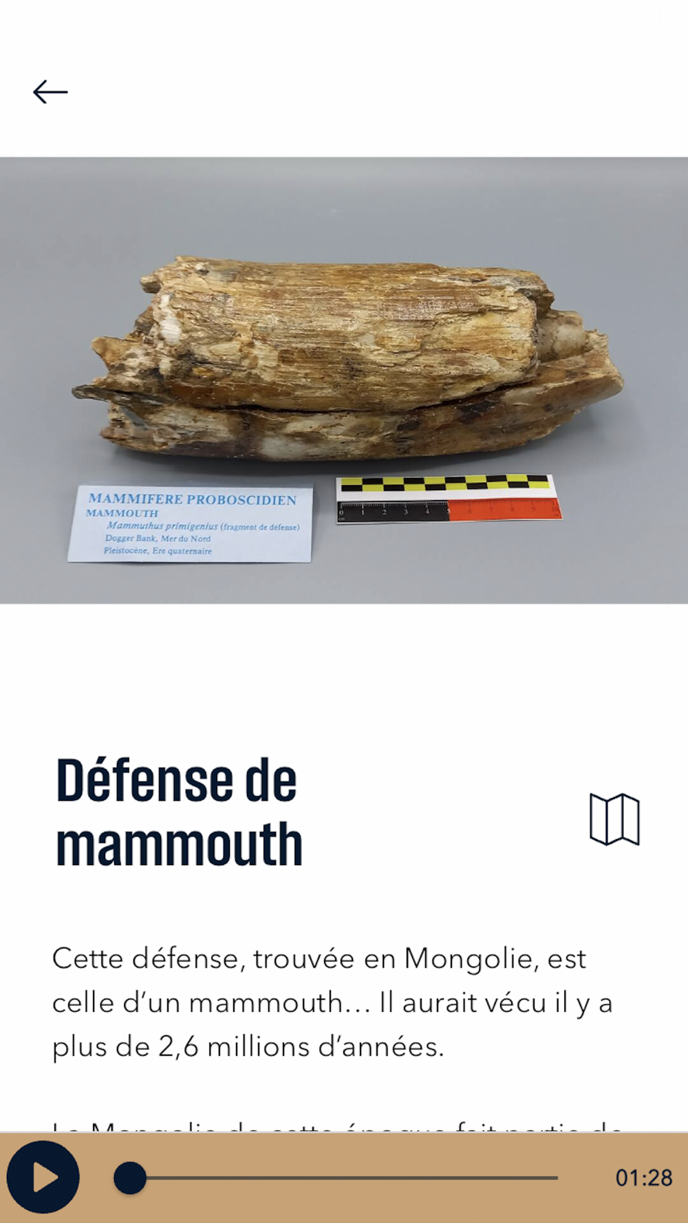 • Parcours familial : vous visitez l’exposition avec des enfants ? Choisissez le parcours famille et laissez-vous guider par Chono le loup des steppes, un animal attachant et curieux qui saura tester vos connaissances ! L’application est accessible à tous et toutes gratuitement. Elle est disponible en français et en anglais pour le parcours adulte, et uniquement en français pour le parcours famille. Des quiz ludiques ponctuent la visite.