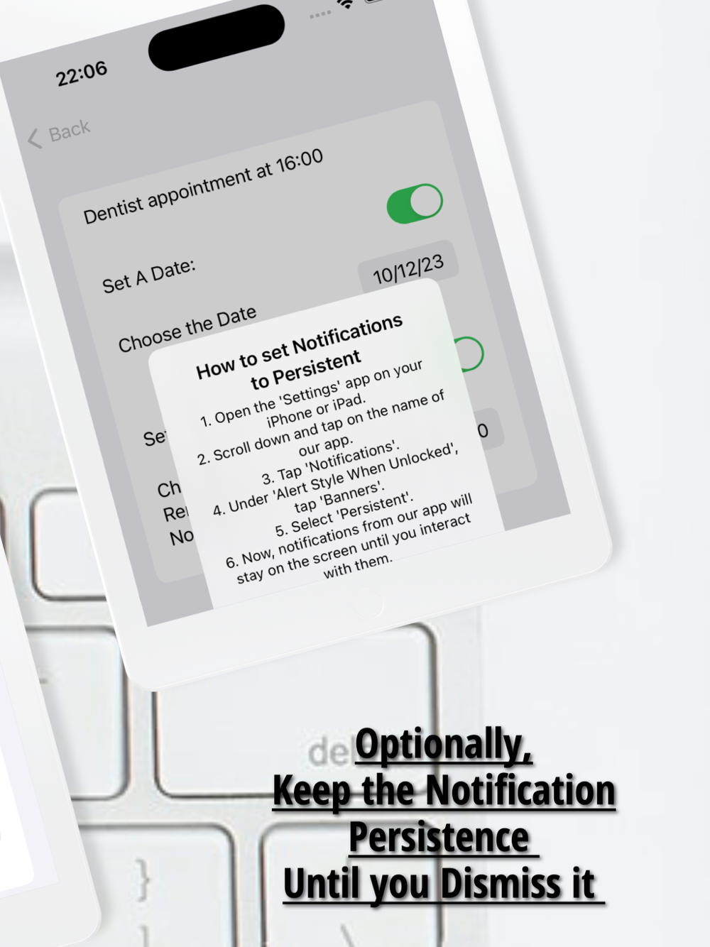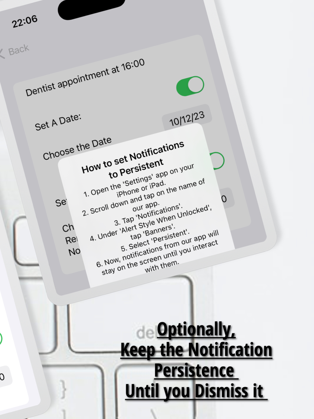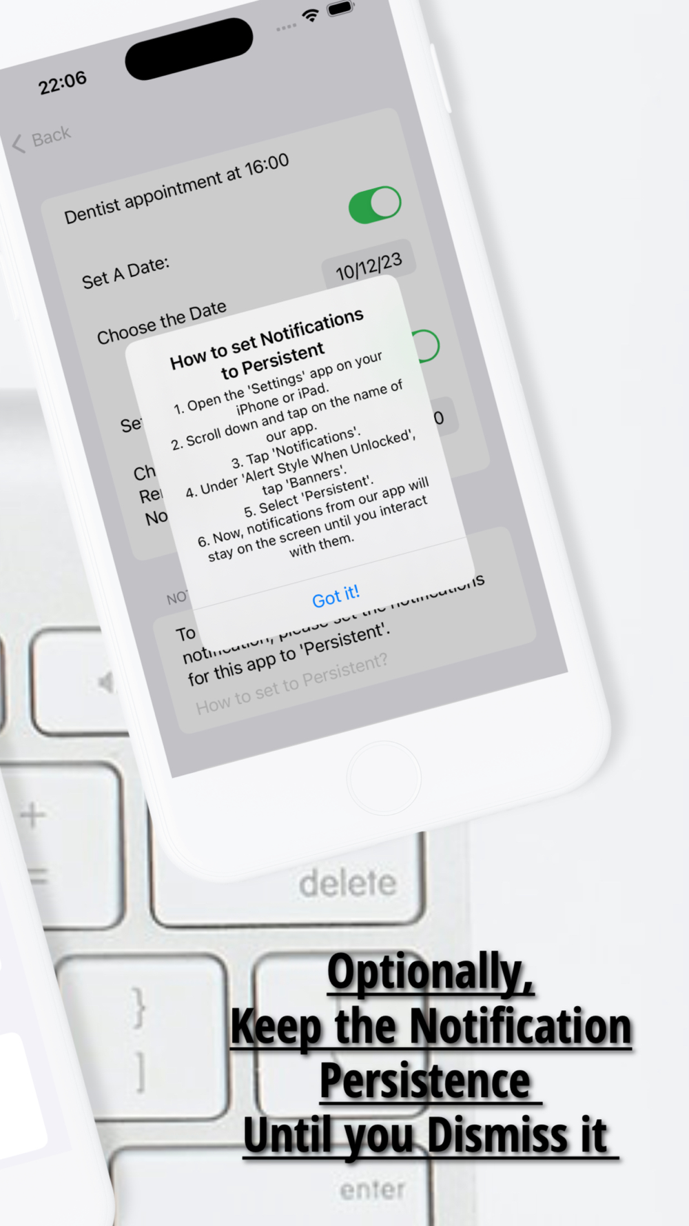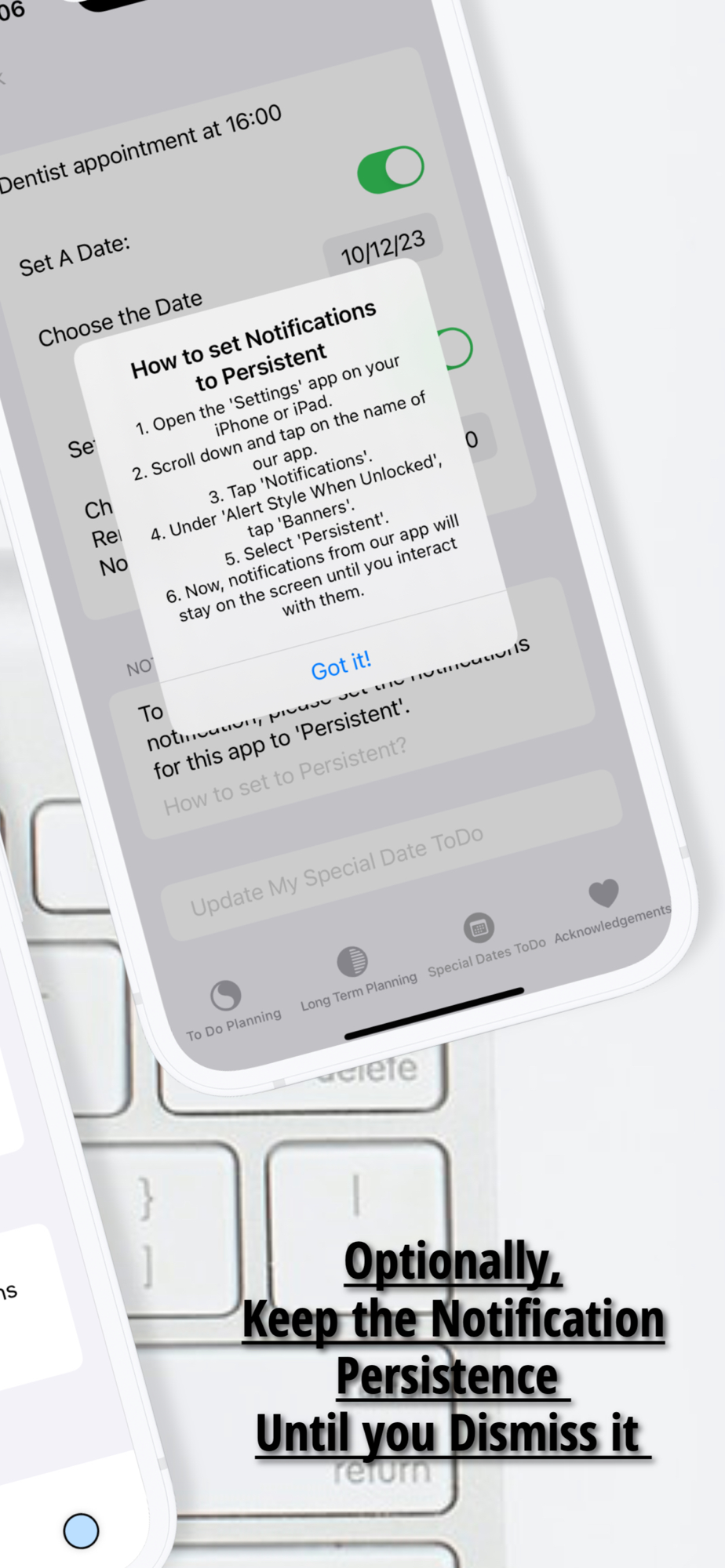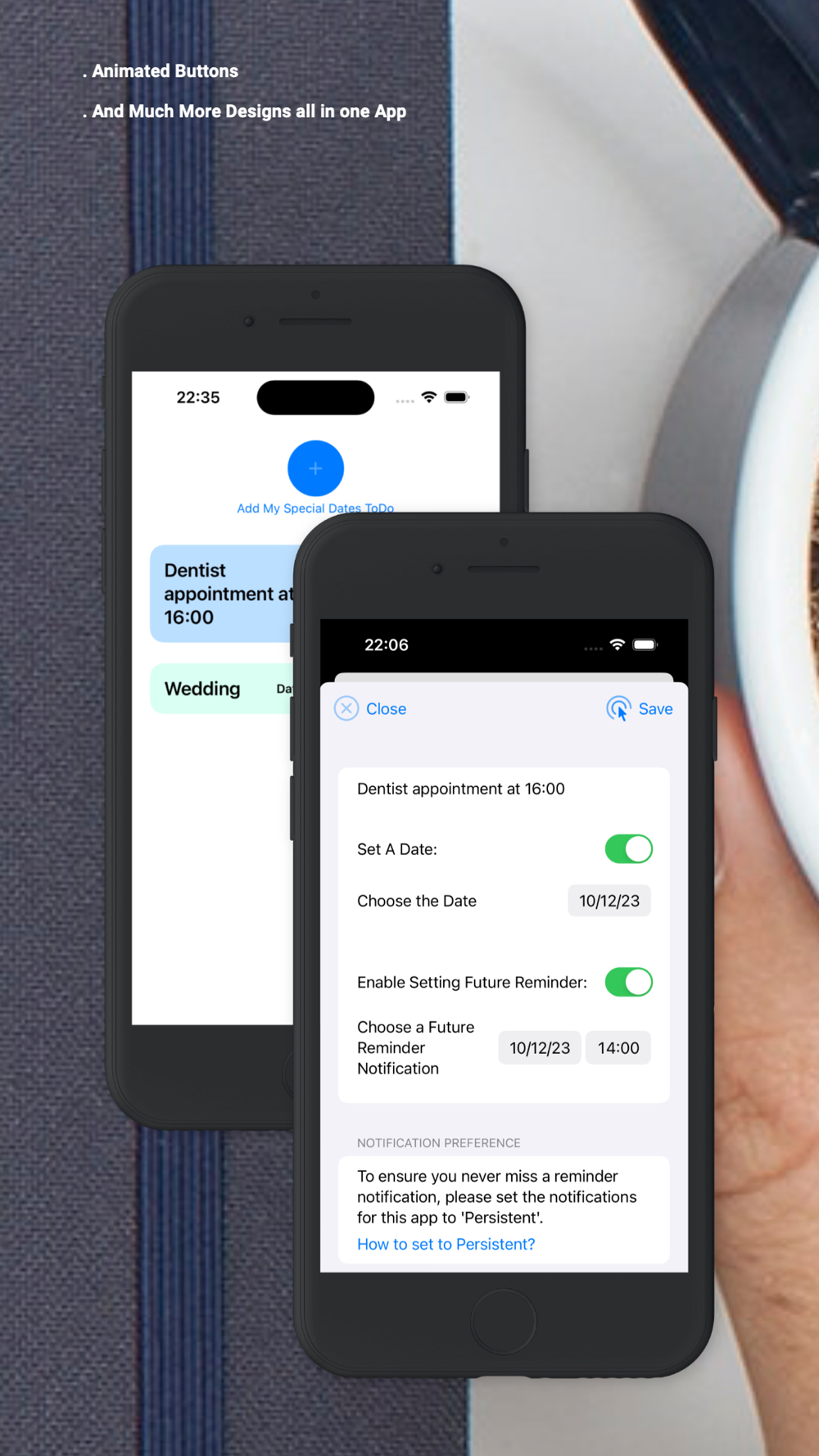 4- Set Reminders for any Special Date (you can choose the Notification to be persisted until Dismiss it)