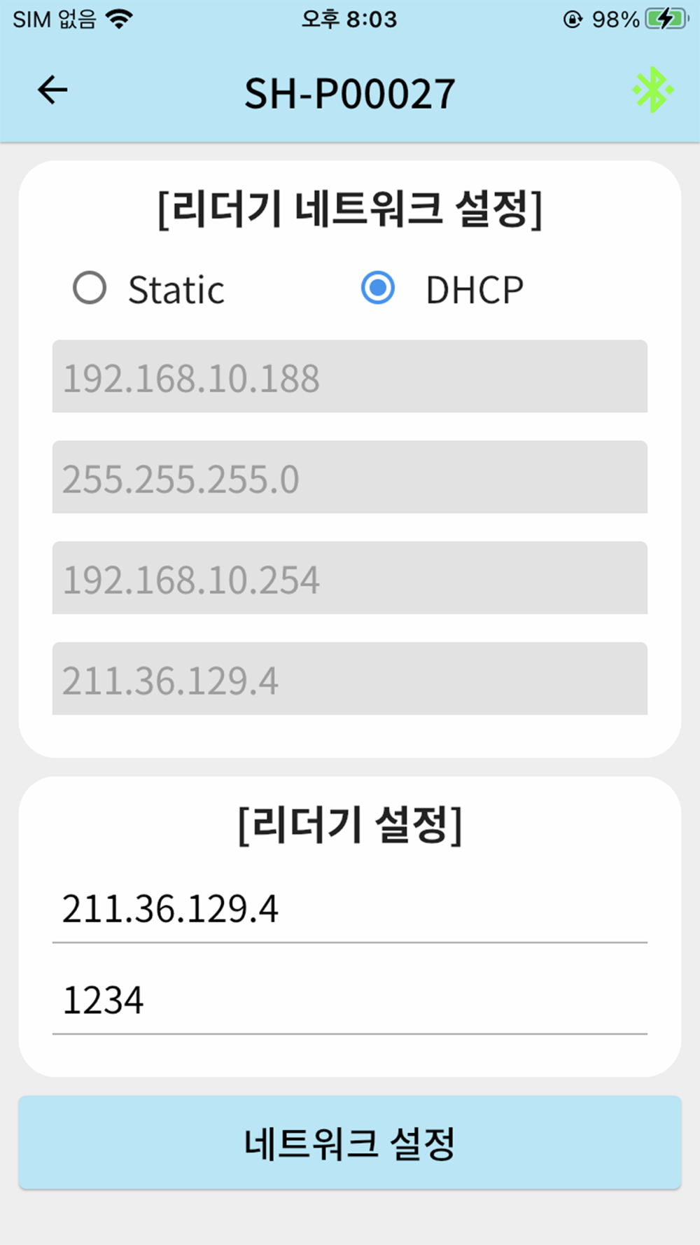 - 주변의 SHNET 블루투스 장비를 검색&연결합니다.