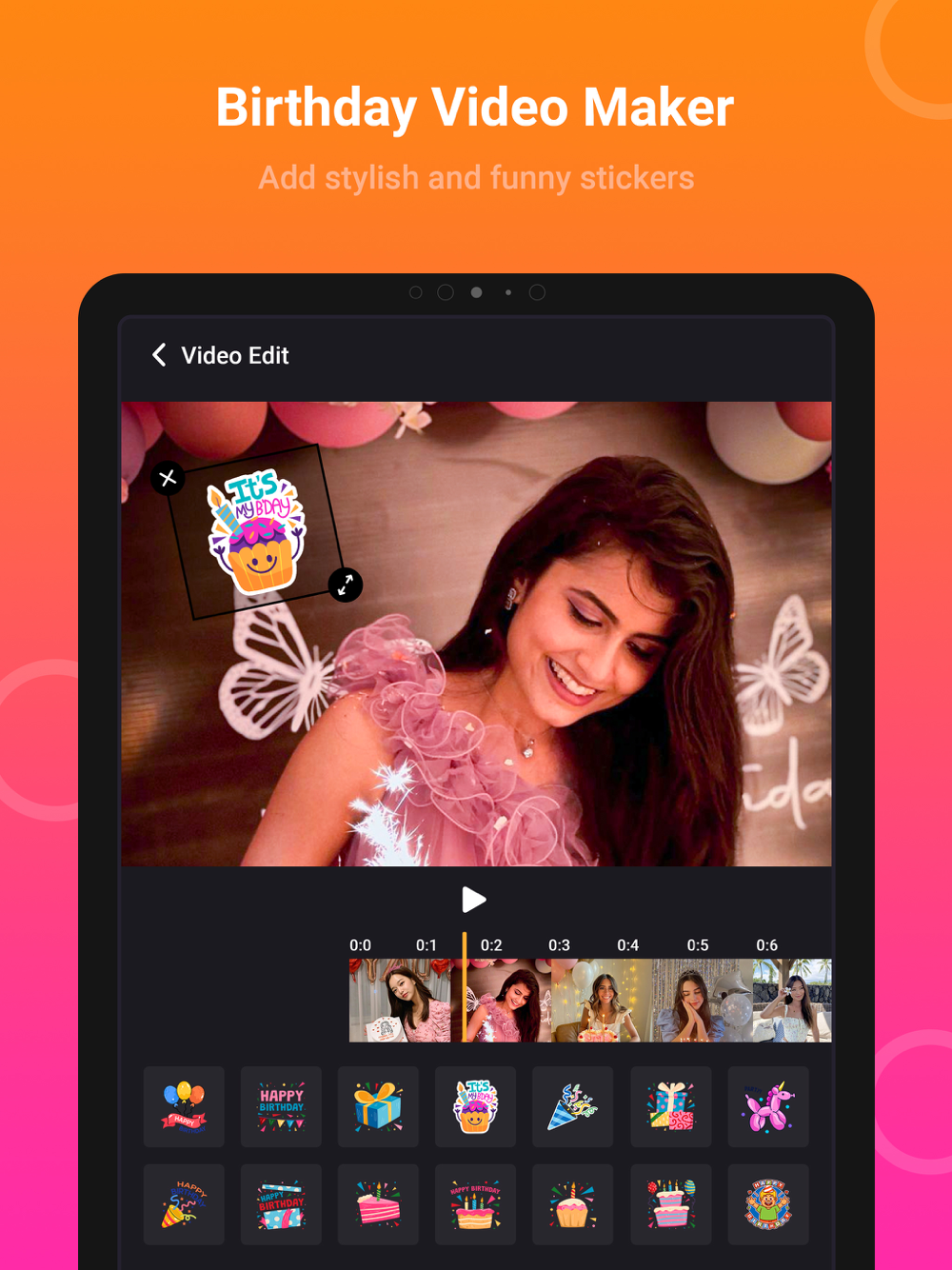 • Create beautiful b'day photo frames and videos with the best Video maker and editor.