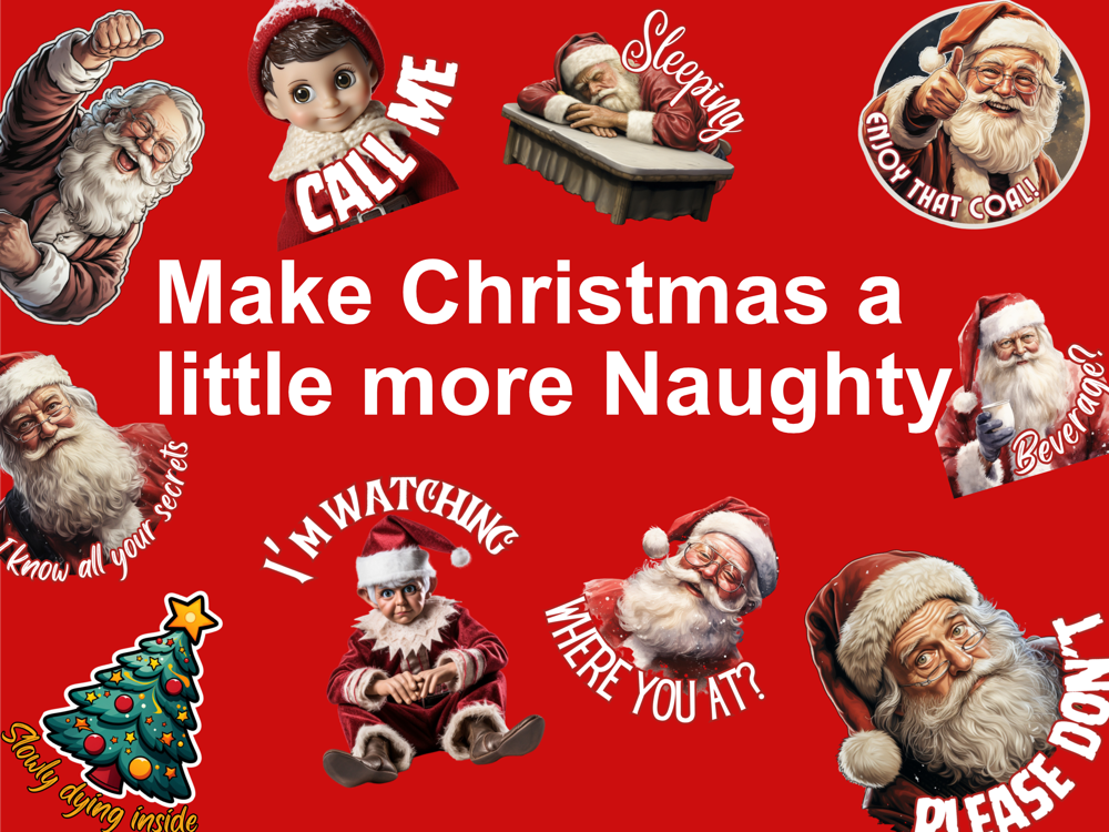 Imagine Santa declaring you as ‘the worst’ or a cheeky elf with a haunting and unwavering glare, always watching…it’s a whimsy ride through the snarky side of the holiday season. Each sticker is designed with a dash of sass, a sprinkle of dark humor, and a whole lot of Christmas vibes.