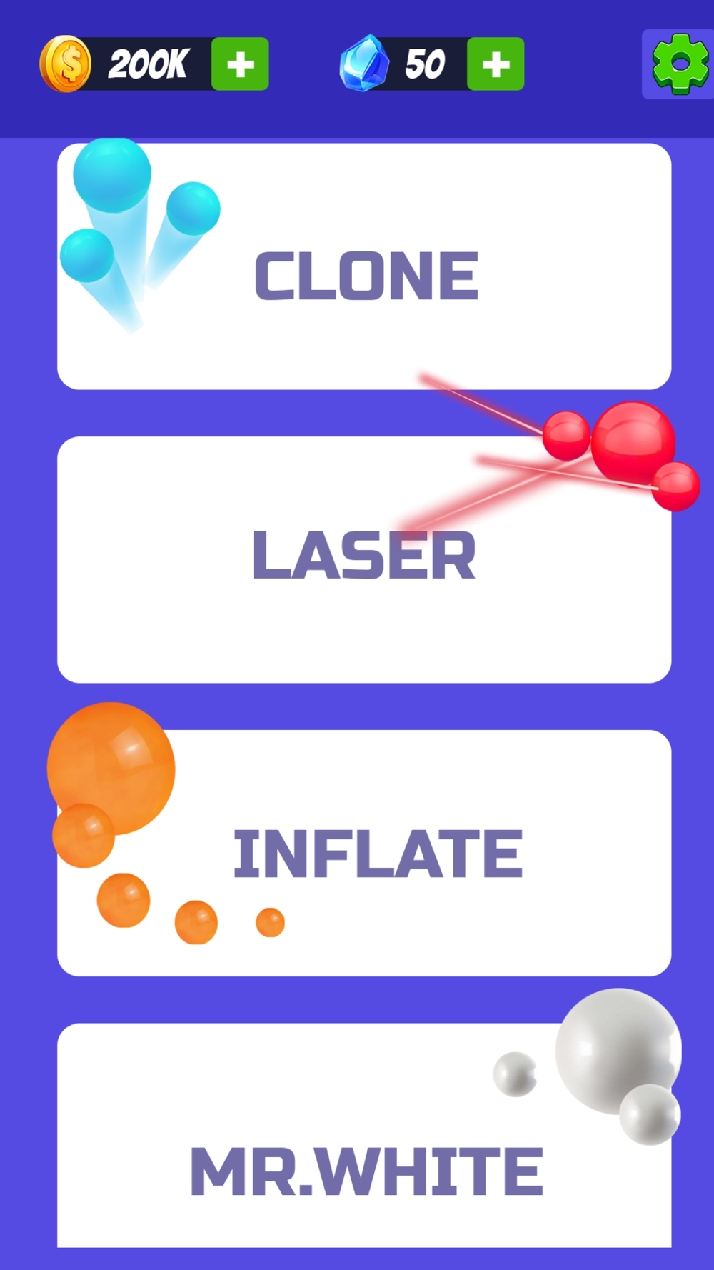 Explore a world of upgrades to enhance your balls' power, speed, and abilities. Witness your gameplay evolve as you invest in these improvements.