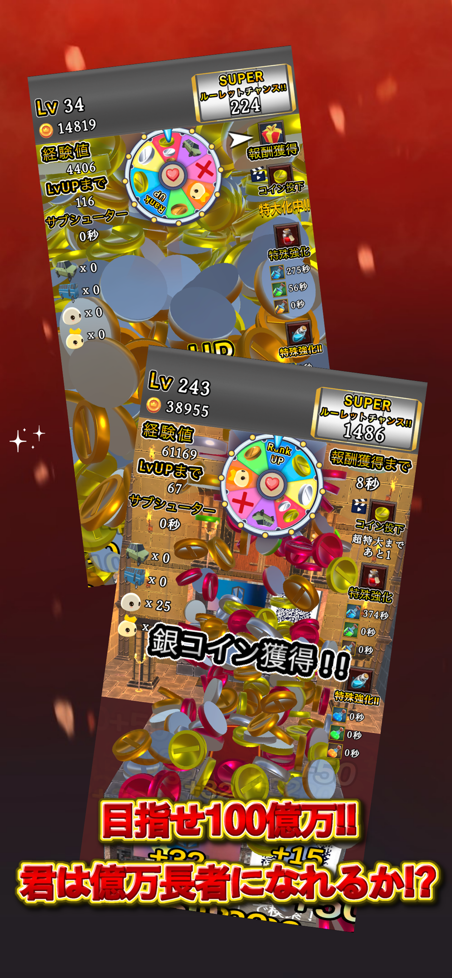 Fight against coin inflation and strategize to increase coins in reincarnation games. Use pusher games and idle clicker games to get coins and improve your skills in clicker training. Have fun for free with coin games and pave your way to become a coin master! If you achieve 100 million in the ranking system, you can become a champion!