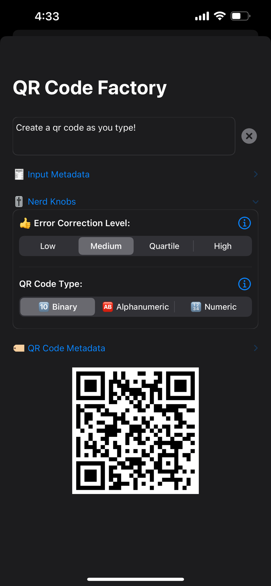 Added the QR Code Factory! A great way to dynamically create and tweak QR codes on the go. Also added quick actions for jumping right into the QR Code Factory or scan a QR code!