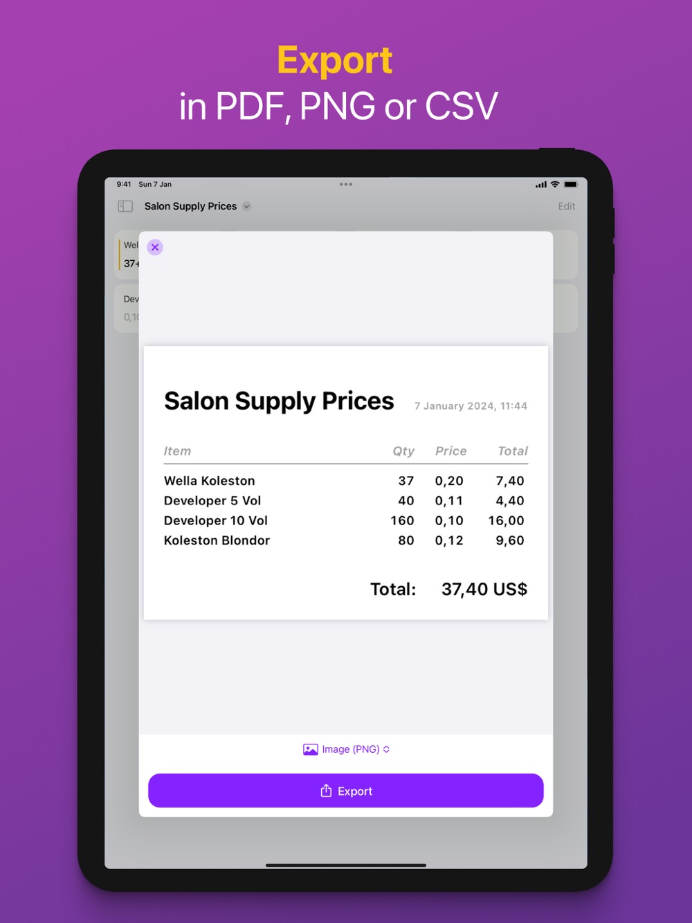 Fast, accurate cost calculations in seconds! Holycalc helps professionals like hairdressers, builders, electricians, and more easily track material and labor costs to create reliable estimates and save time. Perfect for simplifying your workflow!