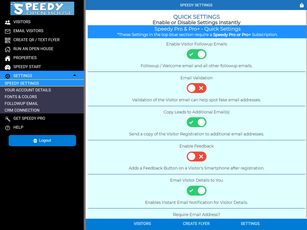 Convert Visitors to Clients with the Free Speedy Open House App or Upgrade to a 'Speedy Pro' or 'Speedy Pro +' Subscription and Unlock Advanced Features.