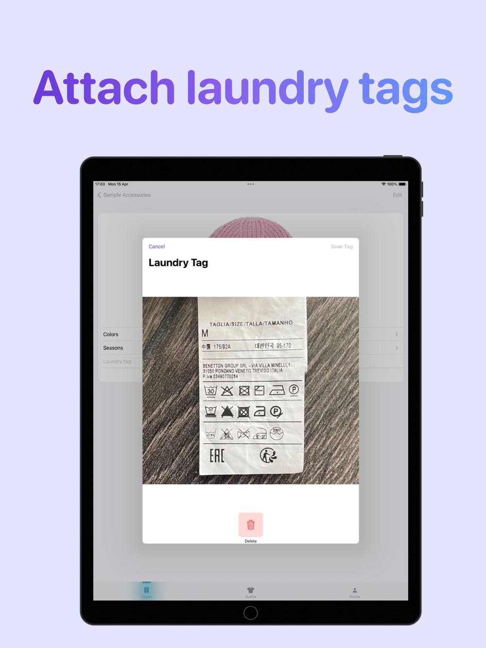 You can assign laundry tags to your clothes and easily access care instructions whenever you need them.