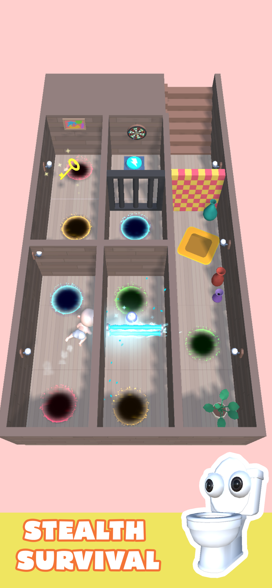 STEALTH SURVIVAL: Tap into your latent slyness and navigate through perilous hurdles. Employ disguise techniques and blend with the game's elements to stay one step ahead of the Toilet Monster.