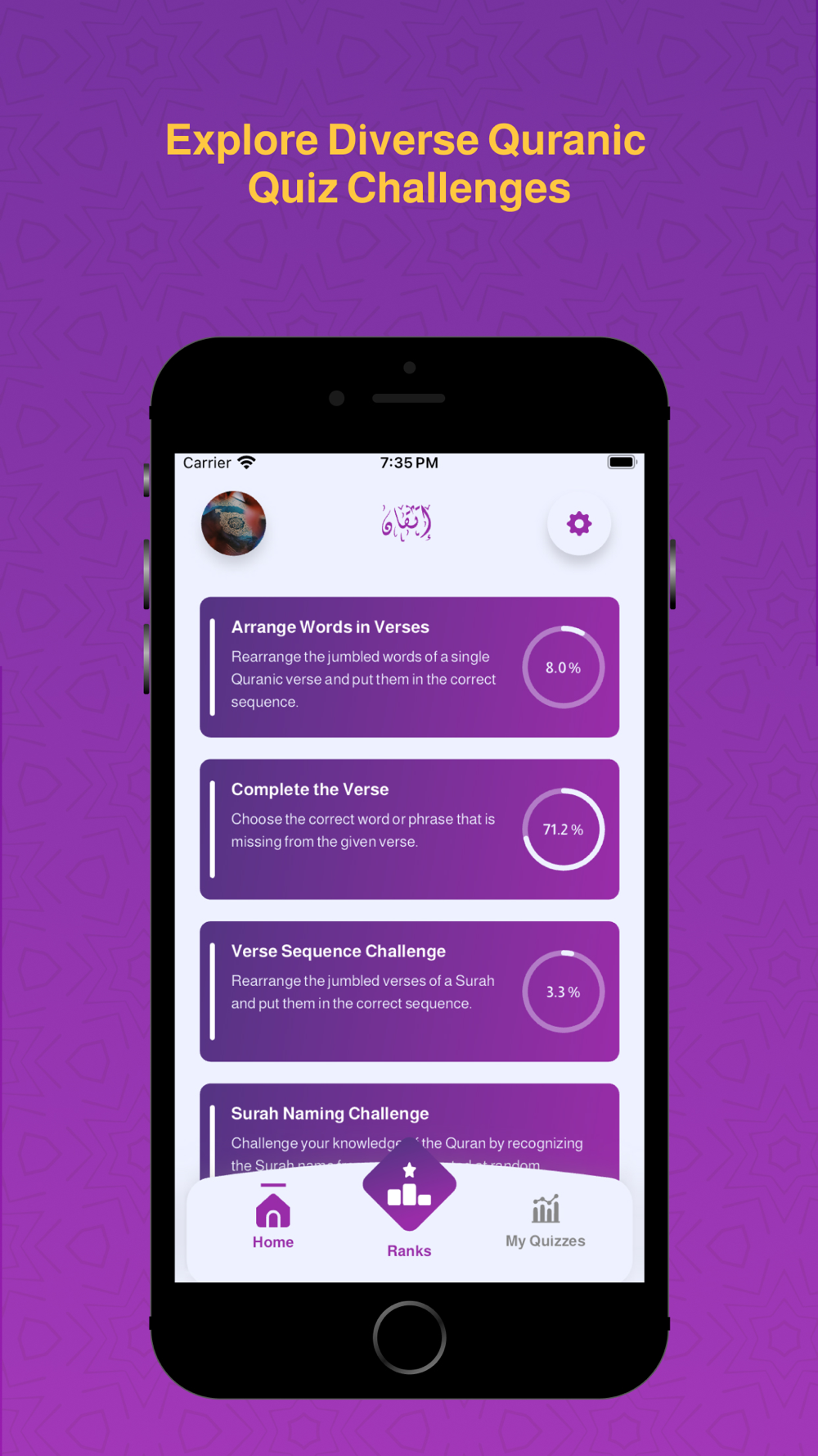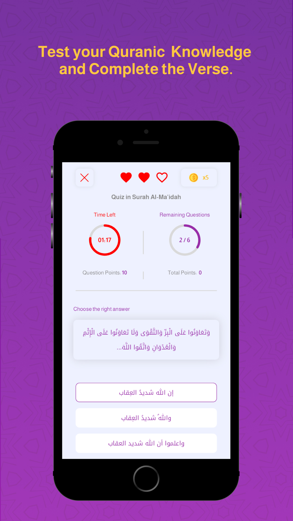 * Complete the Verse: Challenge yourself by selecting the correct word or phrase to complete a given Quranic verse. This quiz type will help you focus on understanding the context and meaning of the verses.