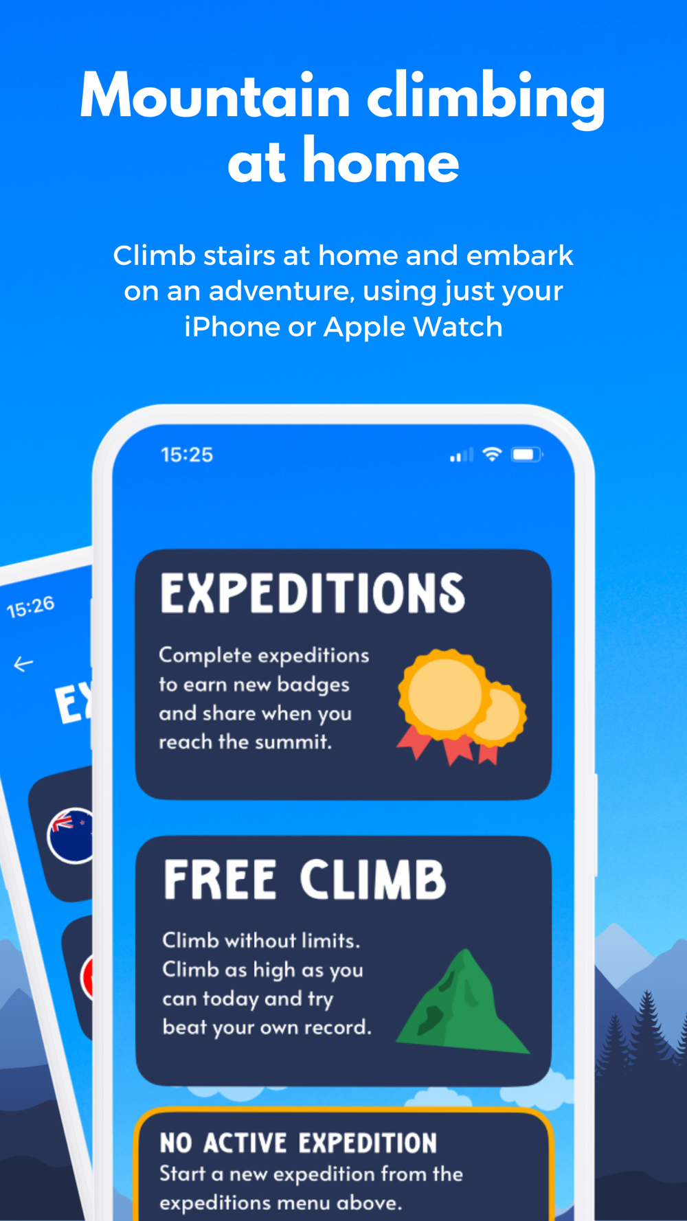 Ascend tracks your stair climbs, whether at home, in the office, or out in the world. Every stair you climb brings you closer to the summit of your chosen expedition.