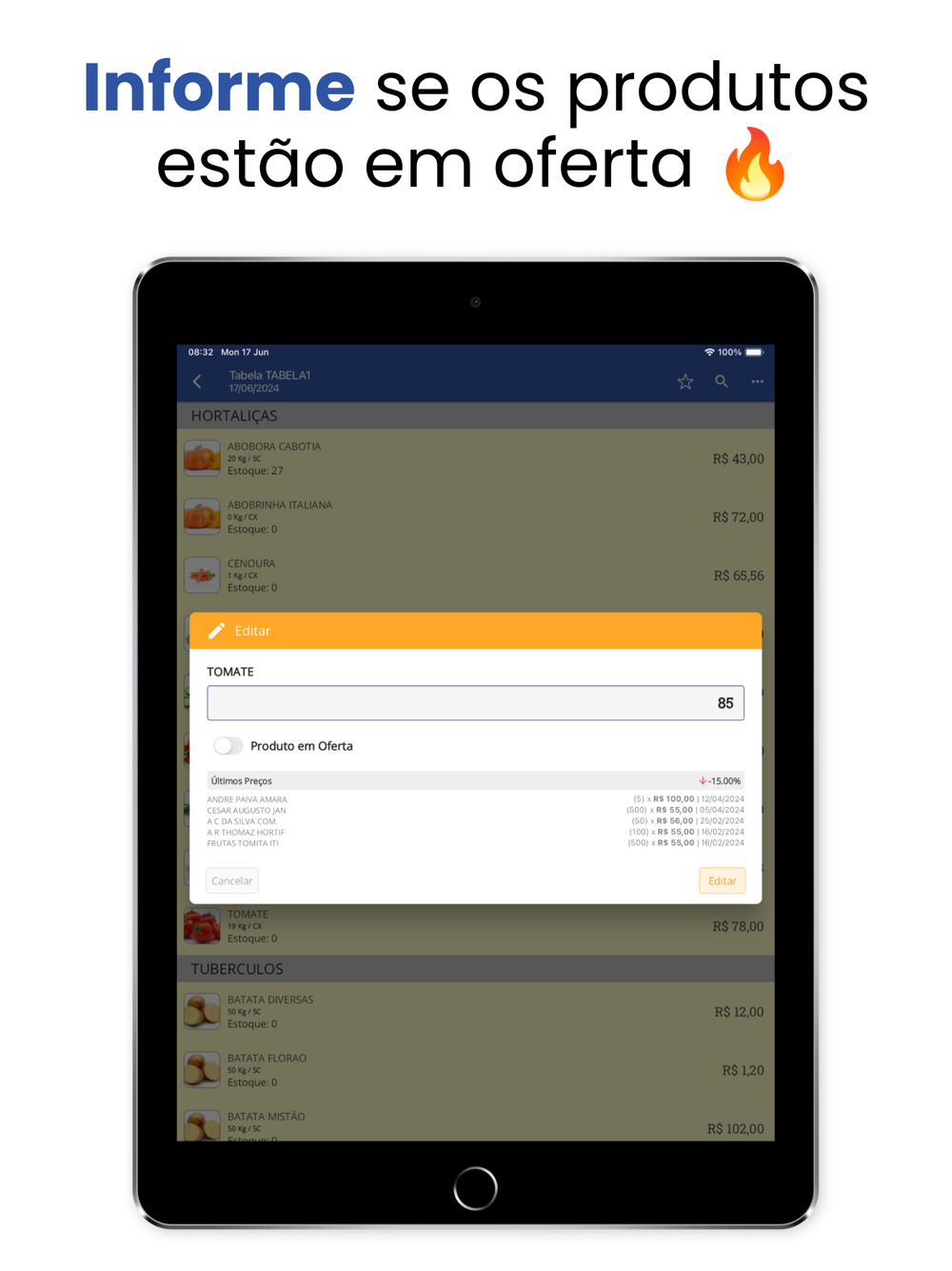 Nosso app é o centro de um sistema completo para gerenciar negócios no Ceasa, mantendo tudo organizado e fácil de acessar. Com nossa ajuda, tornamos a gestão de empresas no Ceasa mais rápida e fácil, melhorando o controle do que tem no estoque e das entregas.