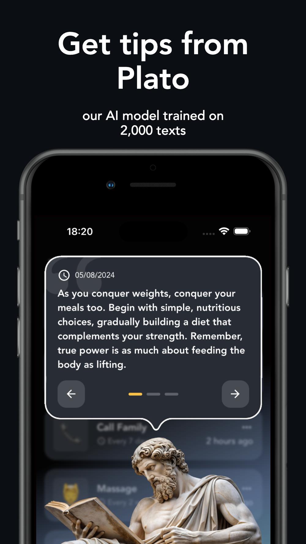Meet Plato, your AI-powered companion in habit formation. Named after the ancient philosopher, Plato delves deep into your routine data, providing tailored insights, thoughtful recommendations, and sharp observations. Engage with our AI assistant to understand the nuances of your daily patterns and their impacts, empowering you to make informed lifestyle choices.