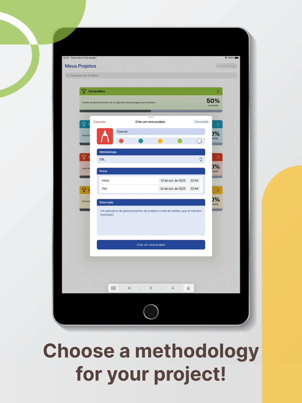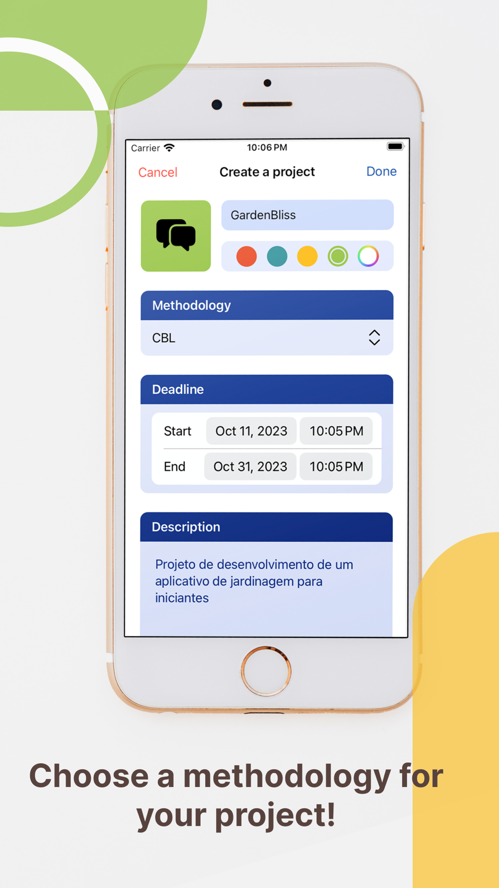 *Create Projects with the possibility to work with agile methodologies, such as CBL, according to your preferences.