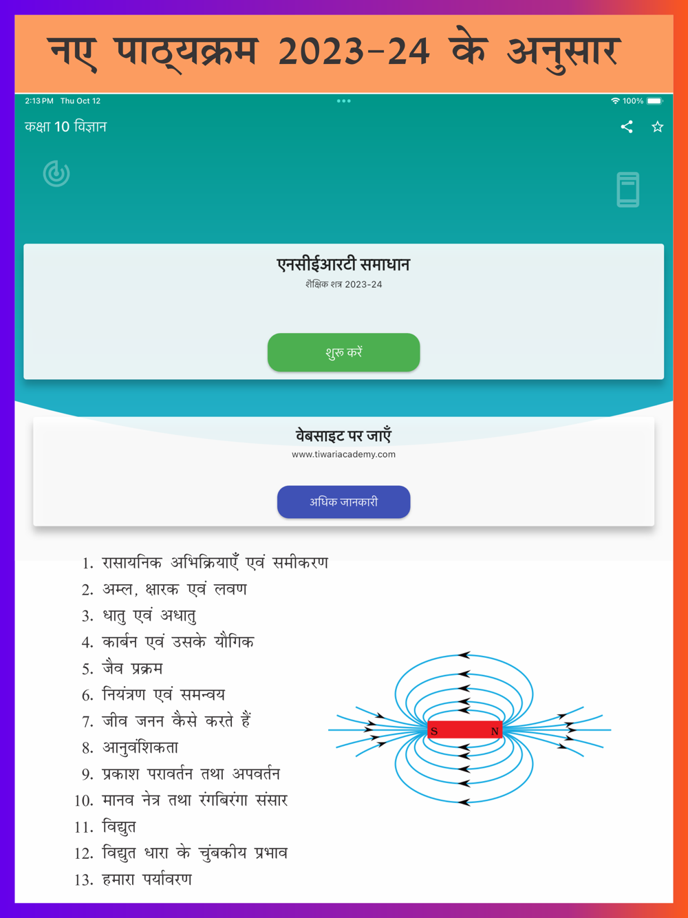 Note: Earlier there were 16 chapters in class 10 science course but as per the rationalised NCERT textbooks issued for academic session 2023-24, there are only 13 chapters for board exams 2024. Rest three chapters are deleted from the course. This app of class 10 Vigyan contains chapters which are currently in course excluding out of syllabus chapters (3 chapters). If someone is facing problem to understand the fact about the changes in course, please contact us.