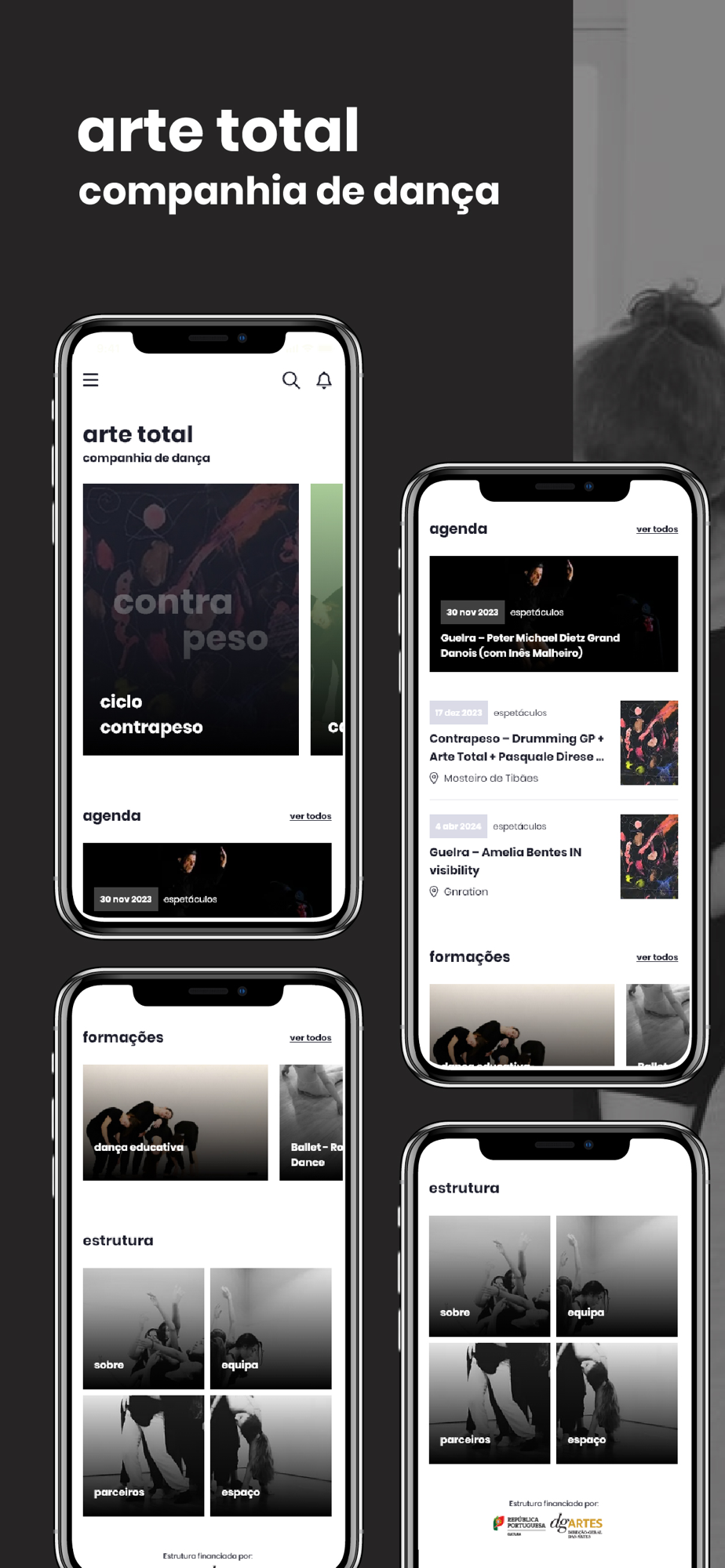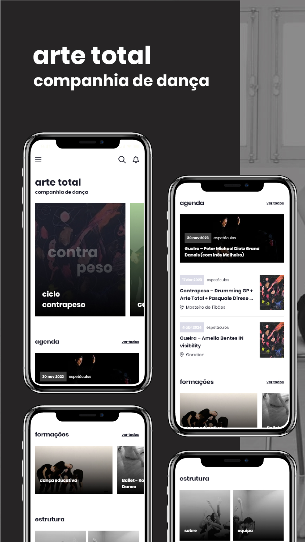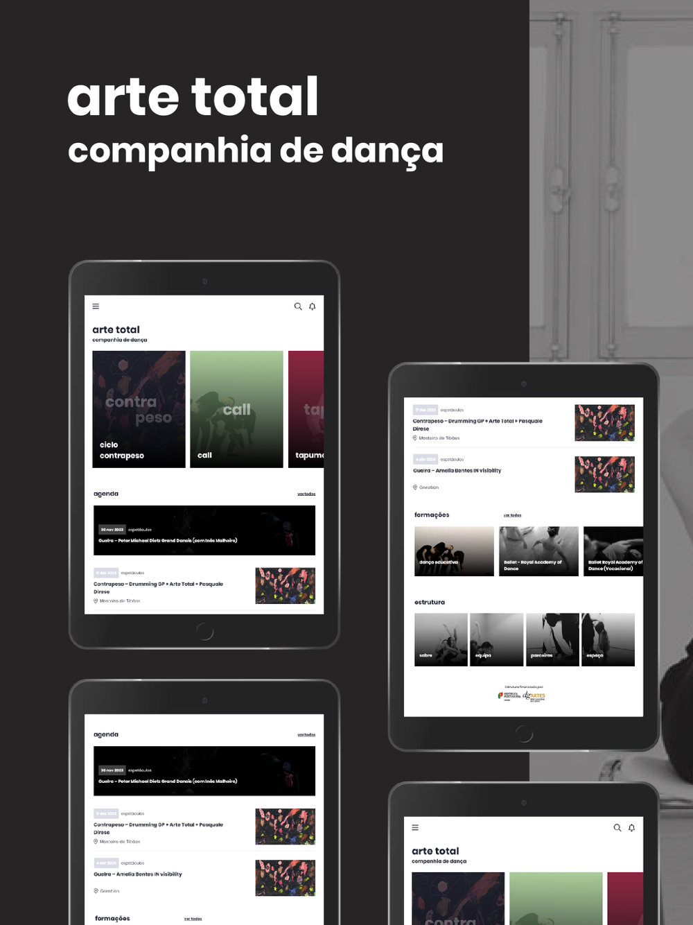 Descubra o mundo da Arte Total, uma estrutura dedicada à criação, produção e mediação artística desde 1992. Explore práticas artísticas contemporâneas através da nossa aplicação, refletindo a nossa poética feminista e compromisso com a educação artística. Navegue por eventos, formações e conheça a nossa companhia de dança. A arte é um clique de distância!