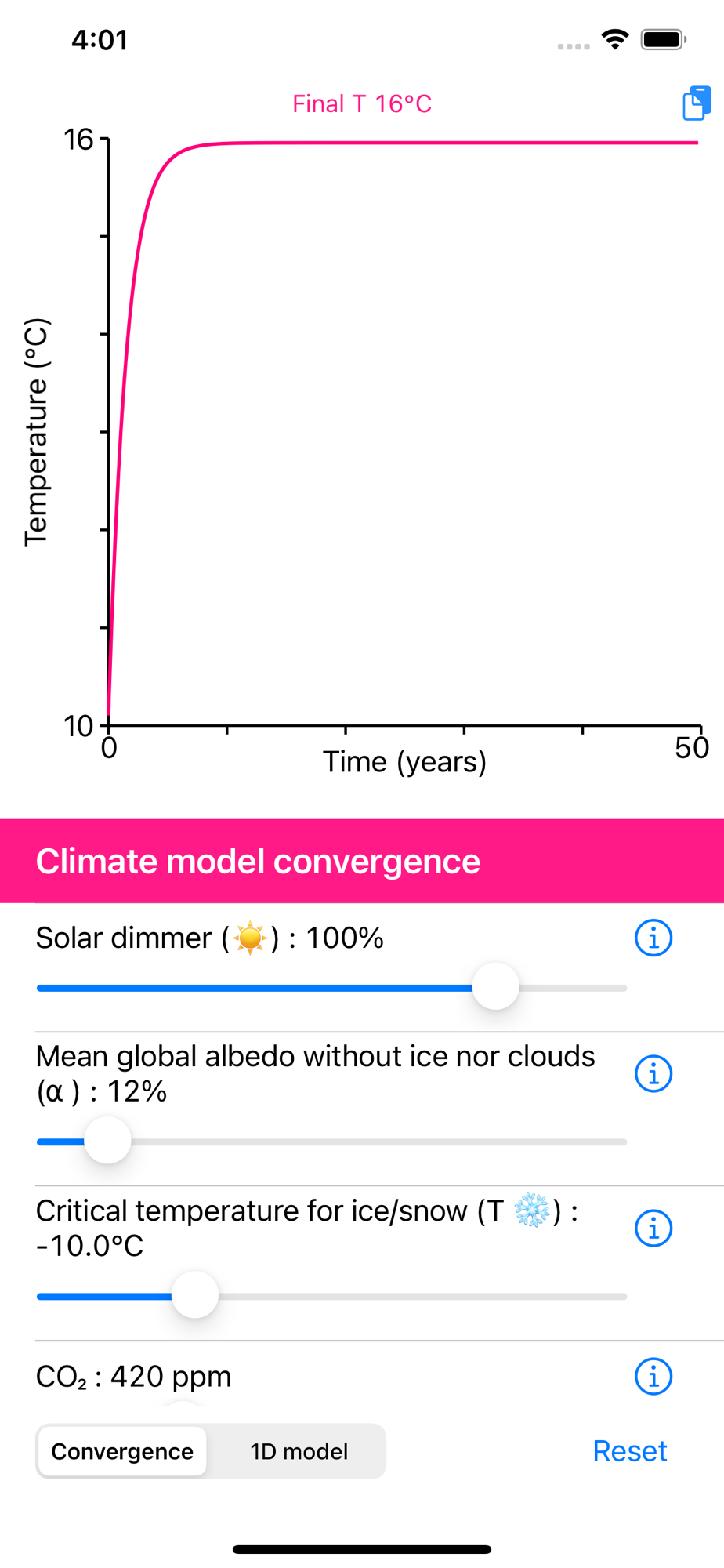 Results are displayed as curves and updated in real time when parameters are changed with the help of the sliders