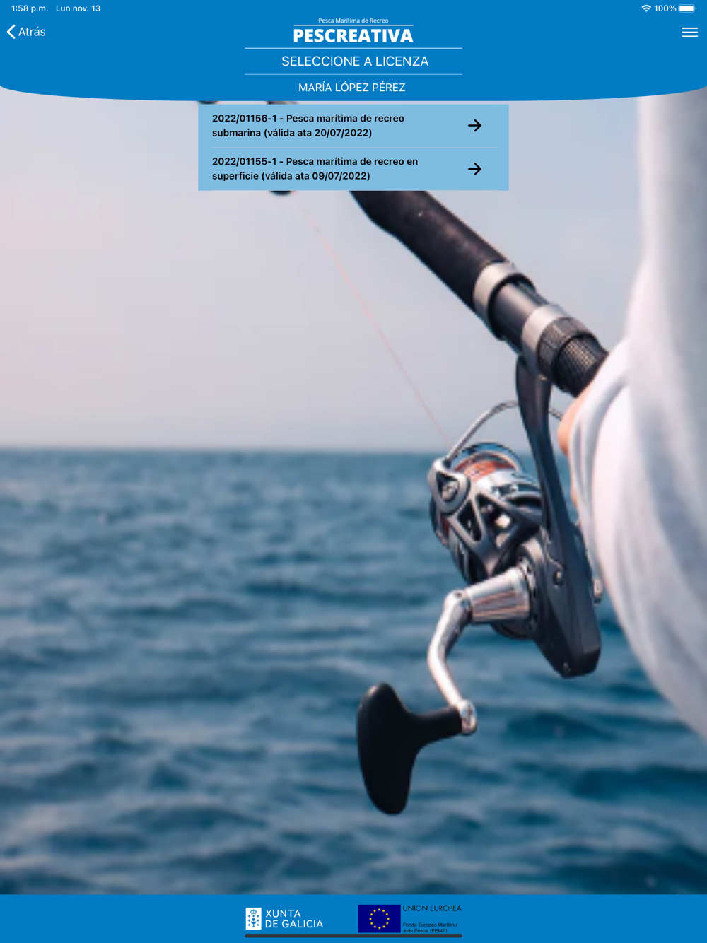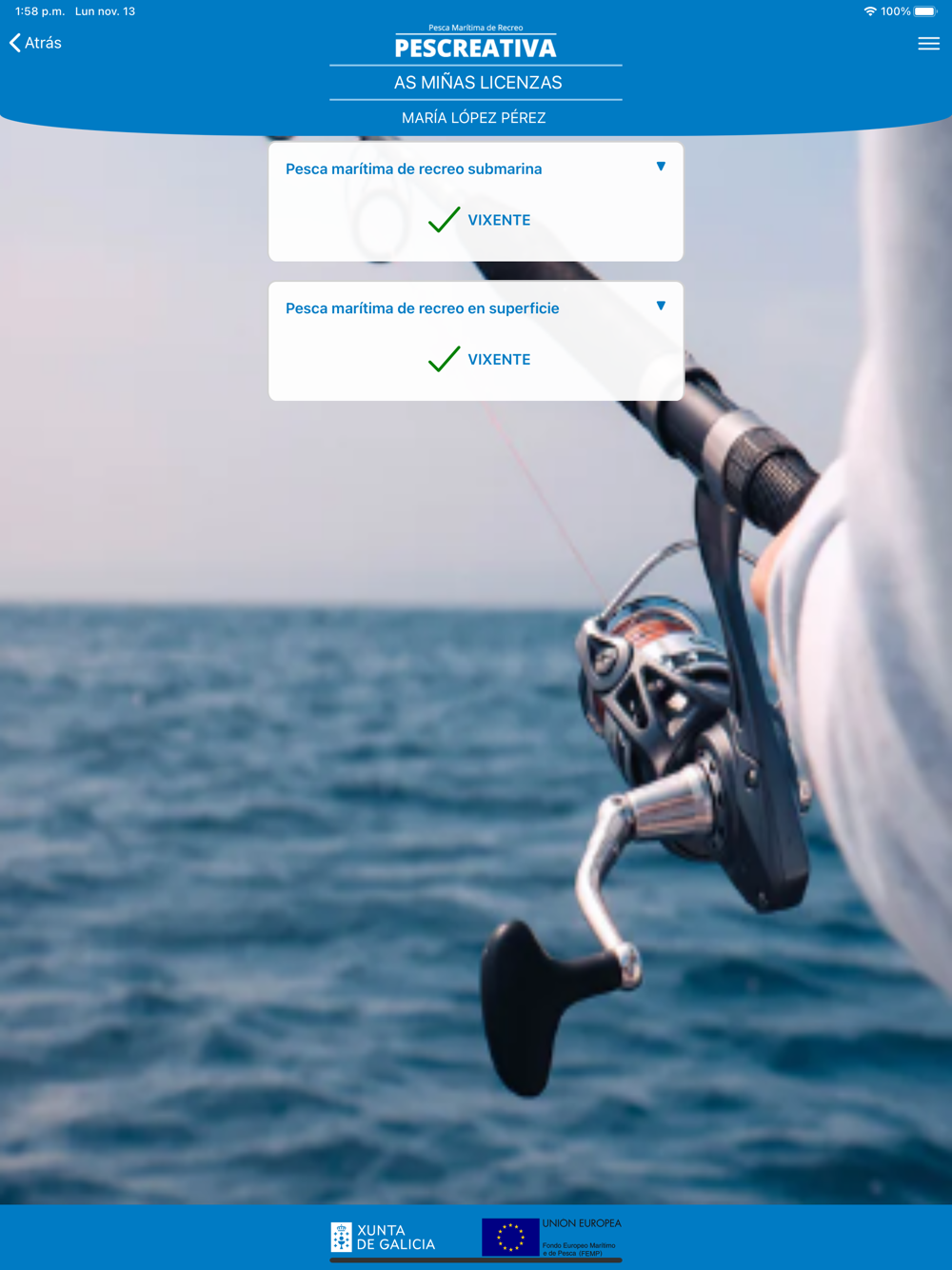 [GL] Consulta de licenzas de pesca marítima de recreo e rexistro de capturas asociadas a unha licenza.