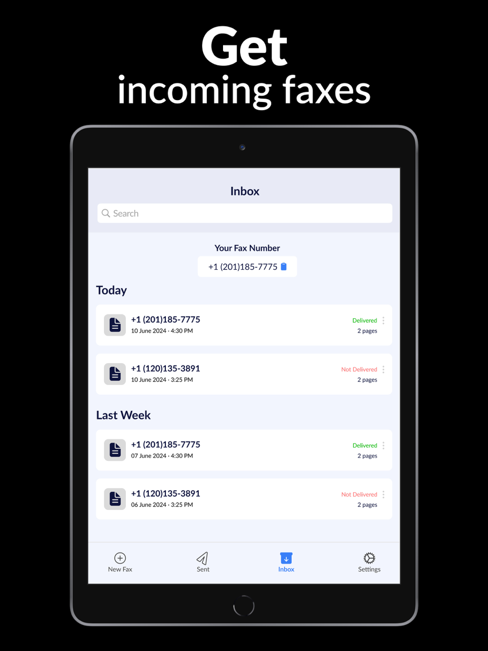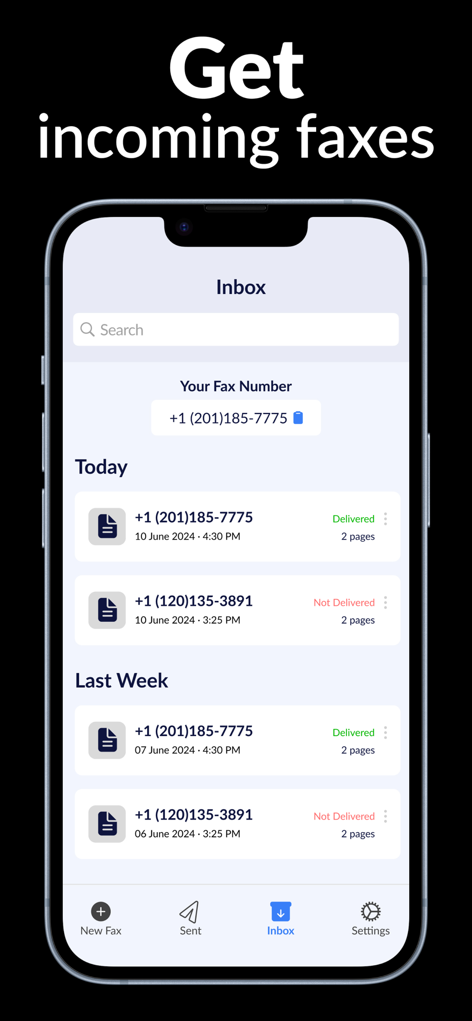 In-App Fax Management: Manage your sent and received faxes right from the app. View, resend, or delete faxes as needed.
