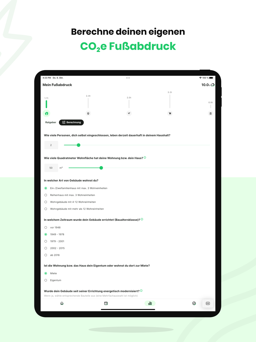 Bist du bereit für den Klimathon? Lade die App einfach herunter, registriere dich mit deiner Gebag E-Mail und starte mit der Berechnung deines CO₂-Fußabdrucks. Mehr Infos gibt’s auf unserer Klimathon-Website.