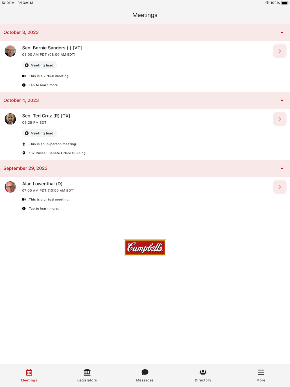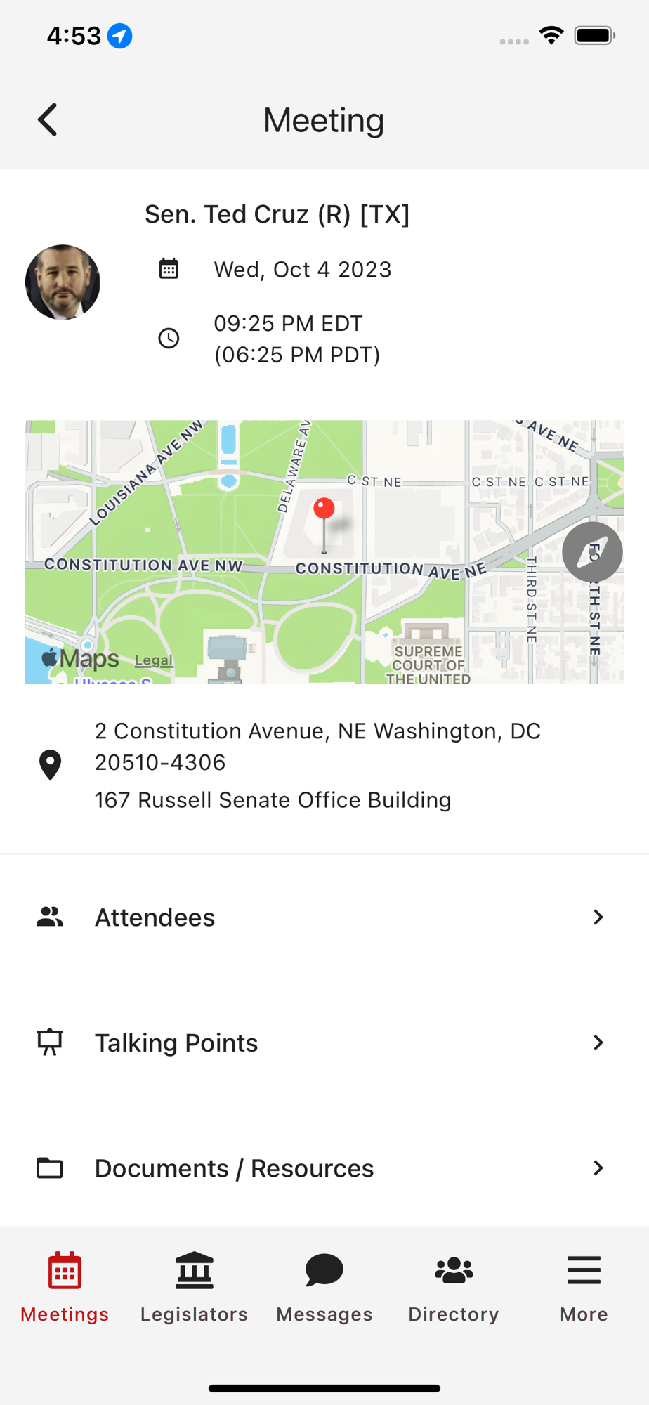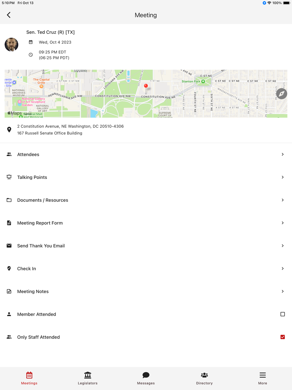 -Notes section for taking notes about meetings, reference talking points, and electronically pass along leave-behinds to congressional staff