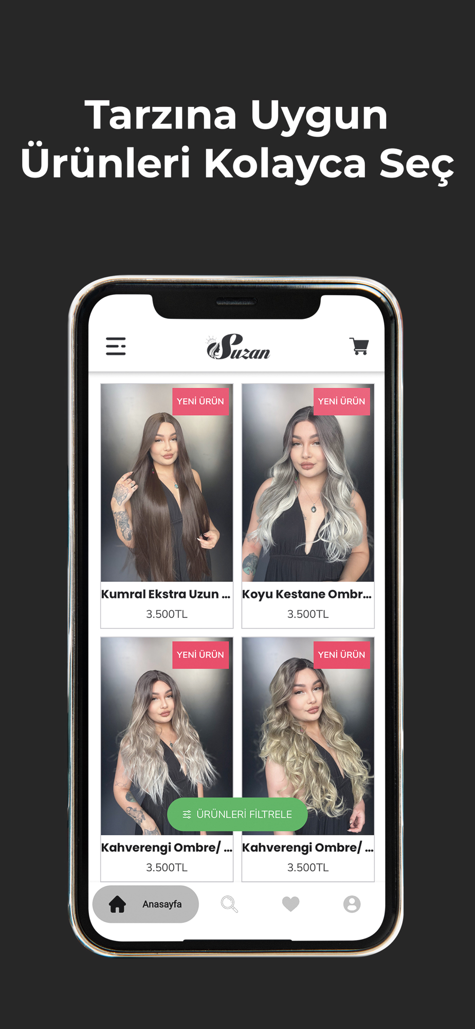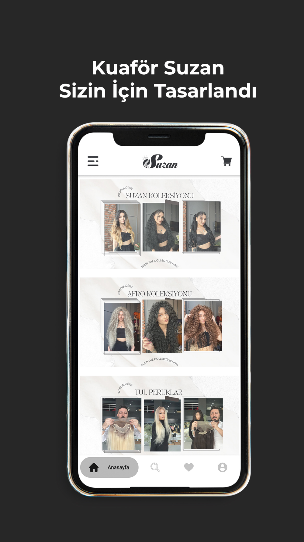 Güzel saçlar ve görünümünüz sadece bir dokunuş uzakta! Kuaför Suzan mobil uygulamasıyla saçınızı ve güzellik rutininizi yeniden tanımlayın. Artık peruk, örgülük saç, kaynak saç, yarım ay çıt çıt, at kuyruğu gibi muhteşem saç ürünlerini hızlı ve kolay bir şekilde sipariş edebilirsiniz.