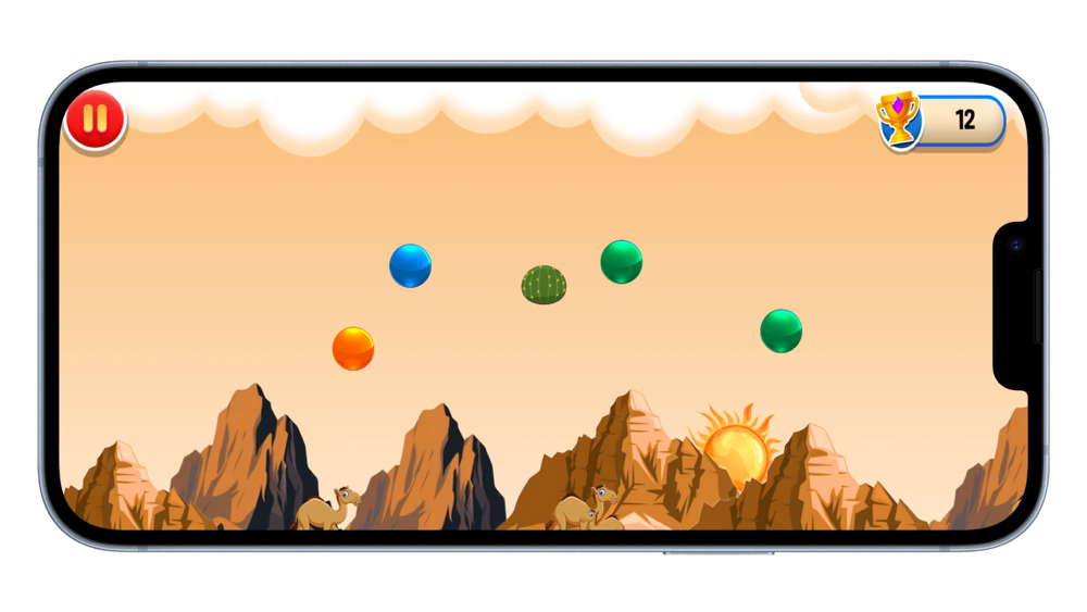 Mountain Desert: Enjoy the sunny desert and collect colorful beach balls.