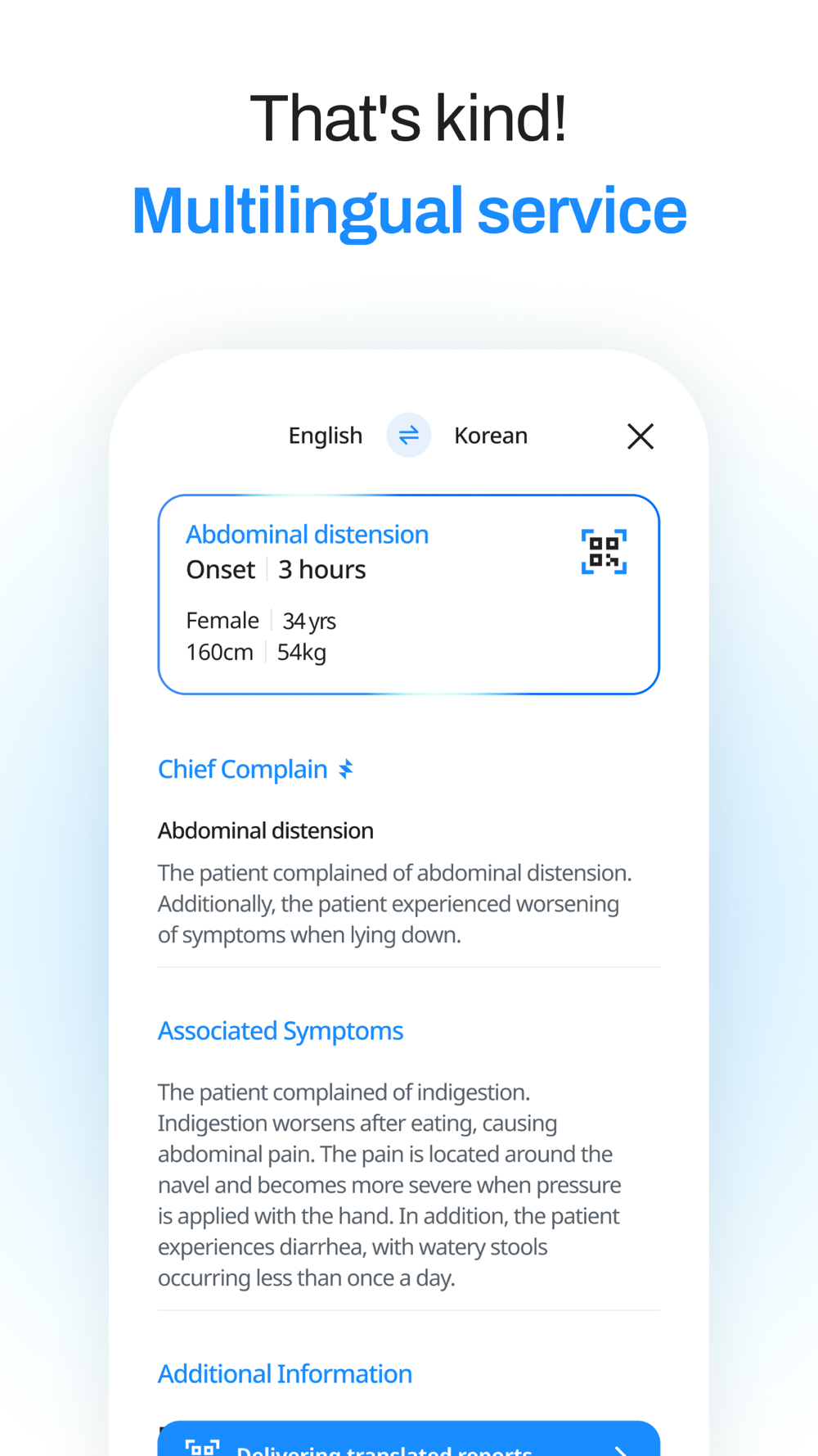 SIMTOMI offers multilingual support, allowing you to communicate with local medical professionals anywhere in the world through expertly summarized translations.
