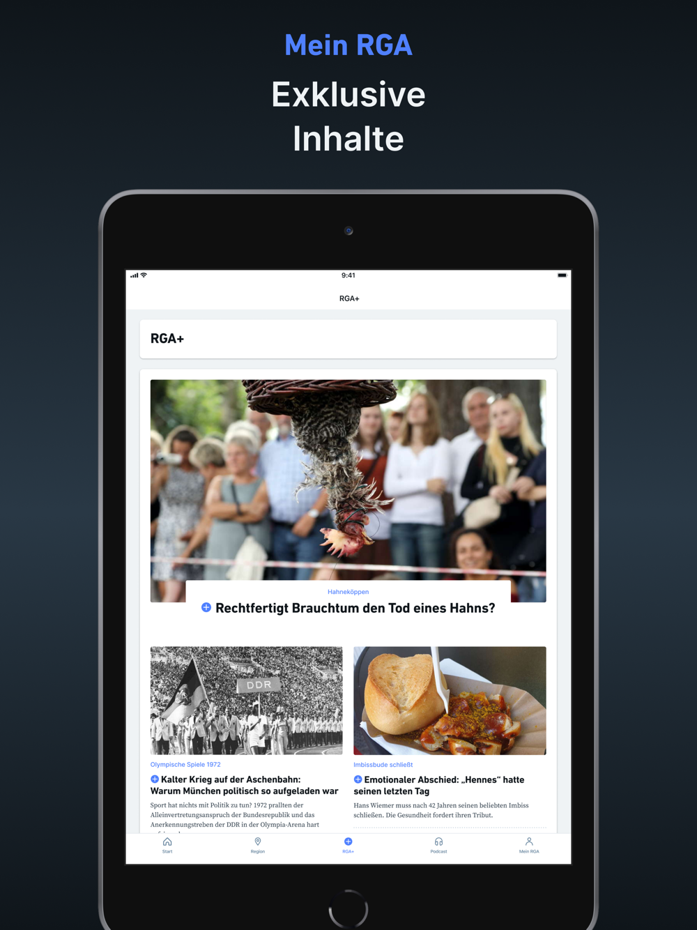 Mit RGA+ erhalten Abonnentinnen und Abonnenten hochwertige Nachrichten, Meinungen und tiefgründige Reportagen aus Ihrer Region, Politik, Wirtschaft, Sport, Kultur, Gesundheit, Wissen und vielen weiteren Bereichen unseres Lebens.
