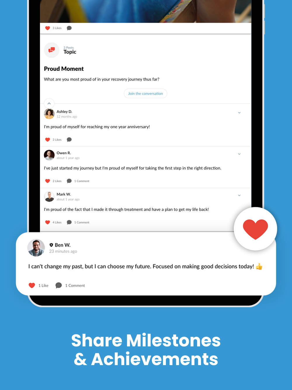 * Discussions are a way for you to share your voice and inspire others on recovery topics.