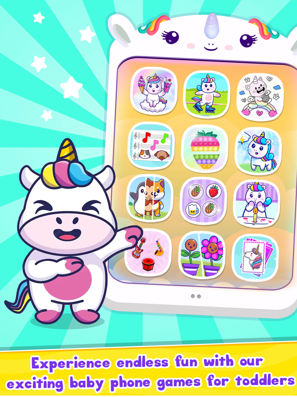 Introducing the ultimate unicorn educational baby phone game for kids - a magical world of baby unicorns filled with an array of entertaining casual and educational games. Dive into this magical game filled with endless fun and educational unicorn baby games designed for girls of all ages.