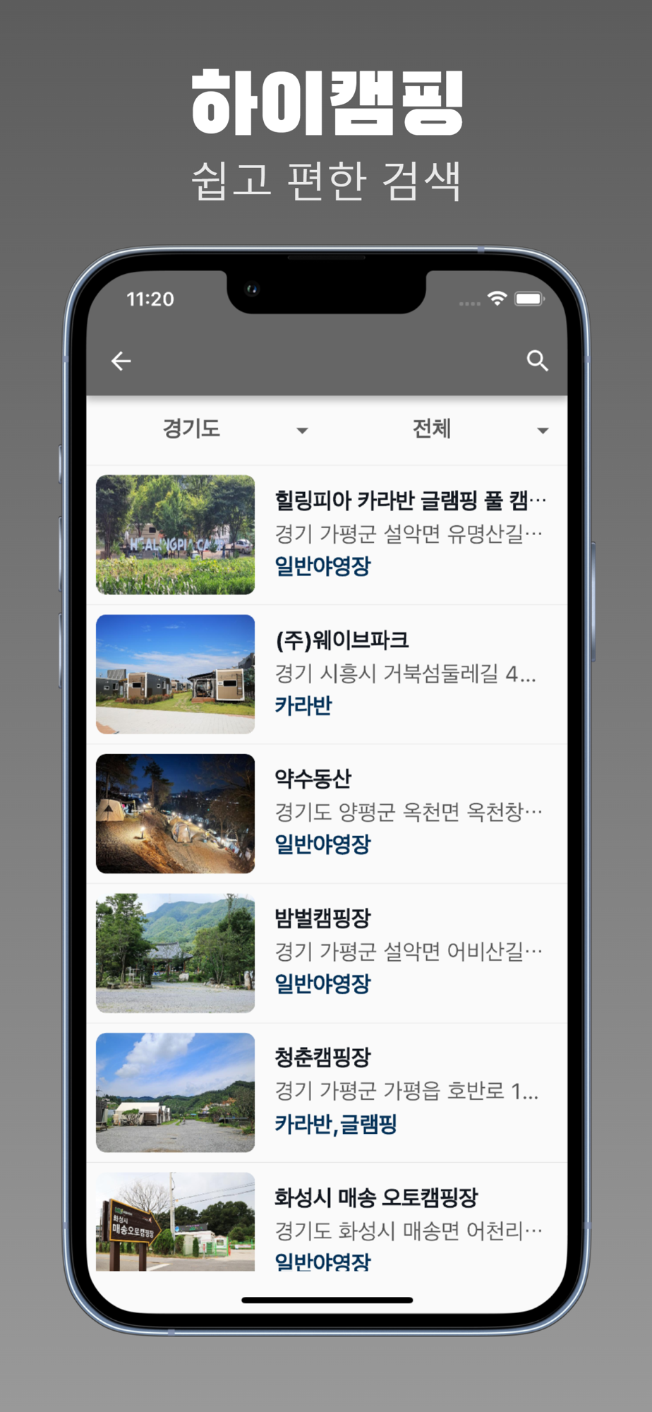 다양한 검색 필터로 당신에게 딱 맞는 캠핑장을 쉽고 빠르게 찾을 수 있습니다.