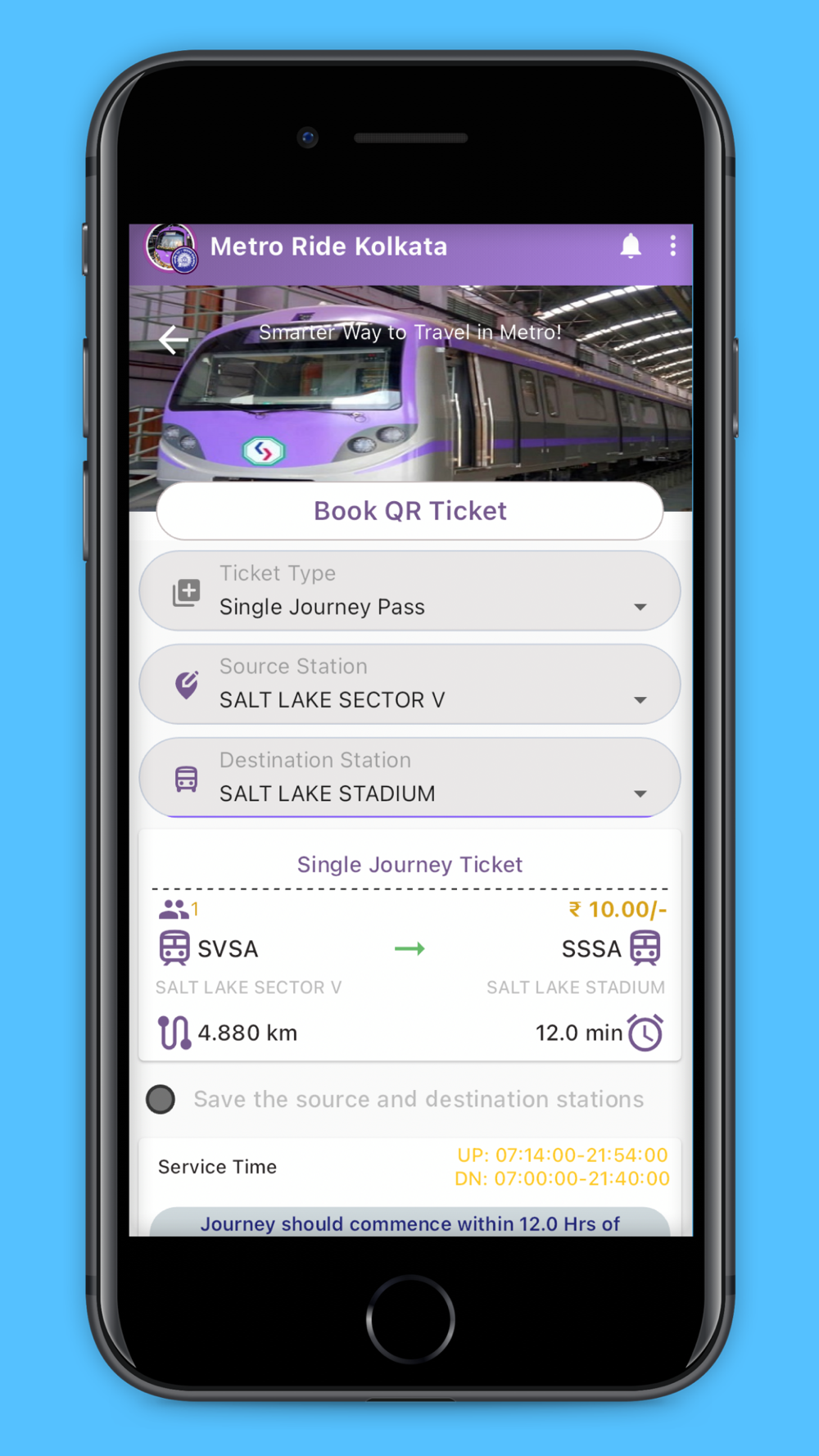 QR based tickets booked through this App, grants user access to Kolkata Metro premises when showed at Automatic Fare Collection Gates. Kolkata Metro Stored Value Smart Card holders can also link their cards and make payment for top-up the same through this App.