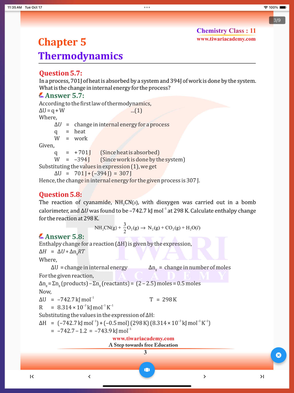 If you need study material based on all chapters of Class 11 Chemistry in Hindi and English Medium, please visit to our official website www.tiwariacademy.com and download it with videos.