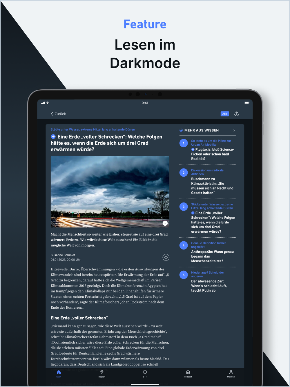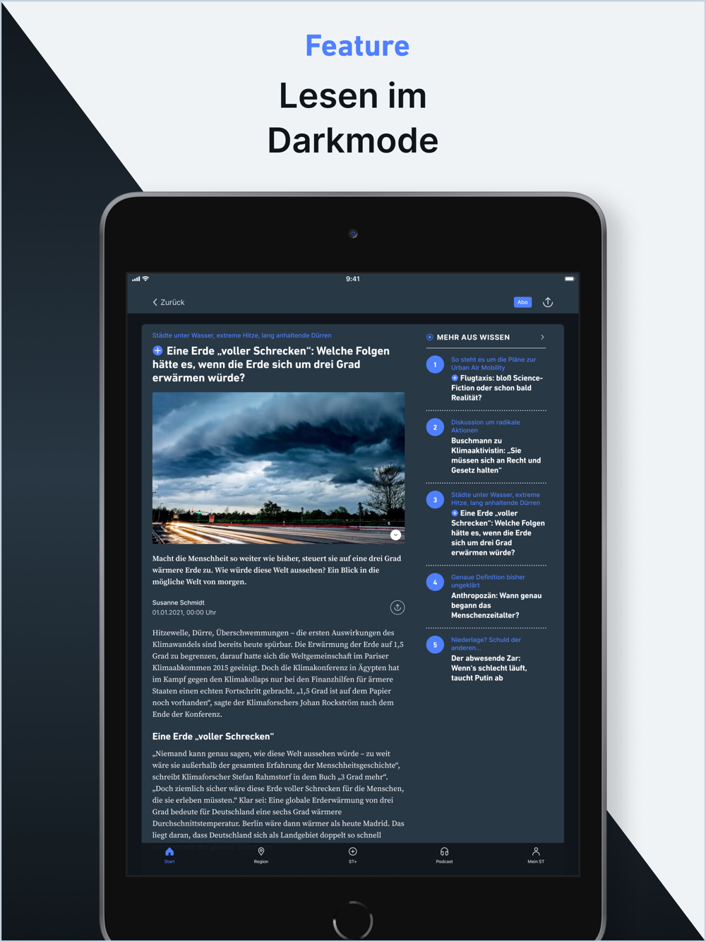 Mit ST+ erhalten Abonnentinnen und Abonnenten hochwertige Nachrichten, Meinungen und tiefgründige Reportagen aus Ihrer Region, Politik, Wirtschaft, Sport, Kultur, Gesundheit, Wissen und vielen weiteren Bereichen unseres Lebens.