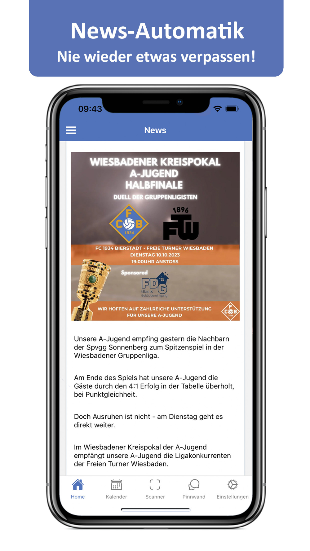 Ab sofort landen alle News, Termine, Social-Media-Inhalte und Infos rund um den gesamten Verein direkt in deiner Hosentasche.