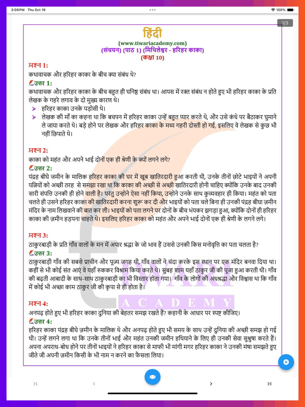 कक्षा 10 के लिए हिंदी – स्पर्श [गद्य]