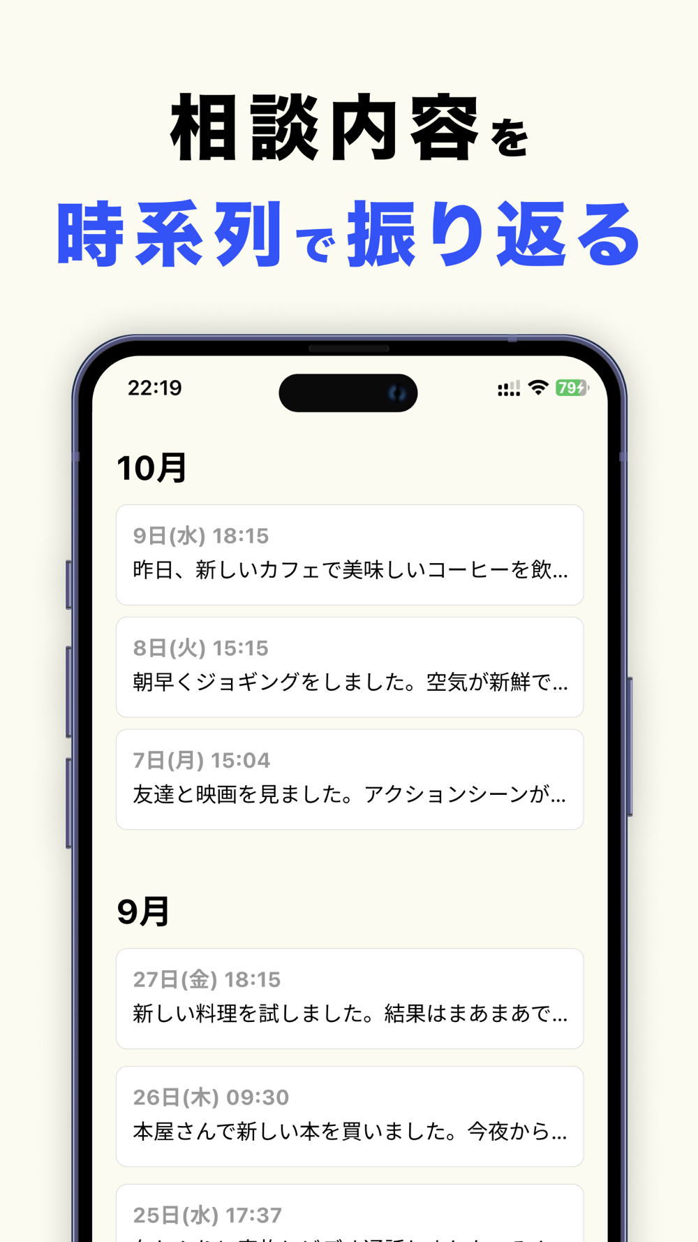 日記の入力をまるで会話をしているような感覚でサクサクと記録することができます。