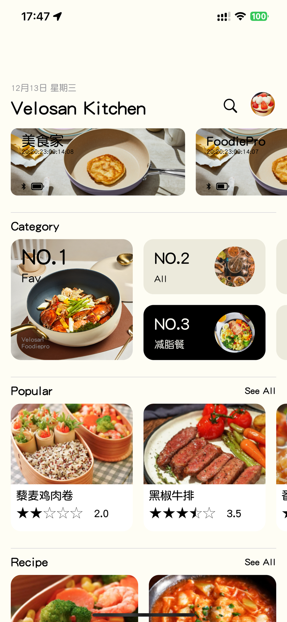FoodiePro is an application designed to allow food enthusiasts and cooking aficionados to explore and savor delicious cuisine. We offer millions of Chinese food recipes with detailed step-by-step instructions and high-definition images to help users easily prepare delicious dishes. Additionally, FoodiePro also supports interaction with smart cookware, allowing users to save their favorite recipes and interact with their devices, so they can view recipe procedures in the kitchen without needing their phones.