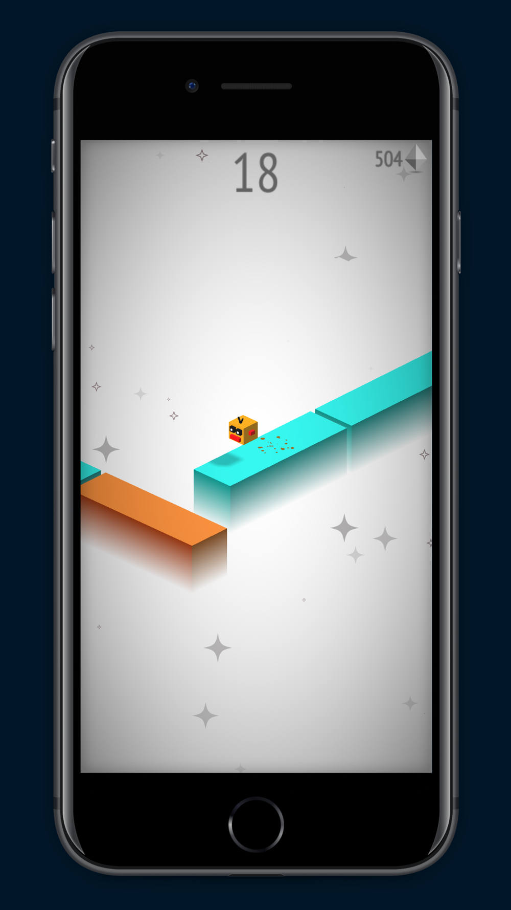KetchApp lovers, rejoice! This simple but addictive game is perfect for you. Test your timing skills as you rotate the orange cube to complete the path and collect diamonds to unlock new characters. The incomplete path will lead to a fall, so be careful!