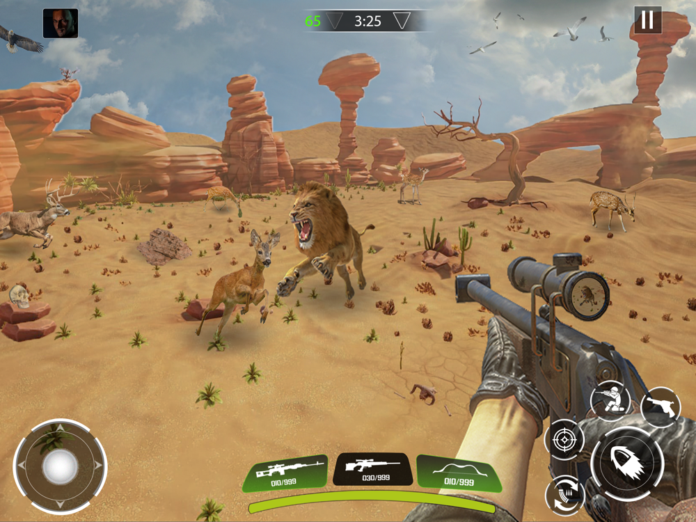 In this Marksman Hunting Sniper Safari Game, you will Explore vast landscapes of Safari and Desert Hunt wild as you engage in deer games and free Dinosaur hunting games. Take on the challenge of bow hunting and Sniper Hunting using your precision to silently take down your targets. With a wide range of bow games and deer hunting games available, you can become a true Big Buck hunter.