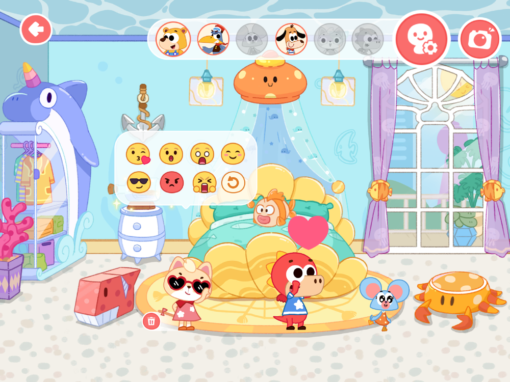 - Drop your favorite characters and friends into your decorated room and choose their expressions.