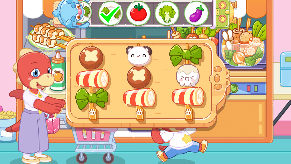Tap a market location to jump into a fun mini-game. Games delight and entertain, while developing essential preschool skills such as hand-eye coordination, classifying shapes, and counting.