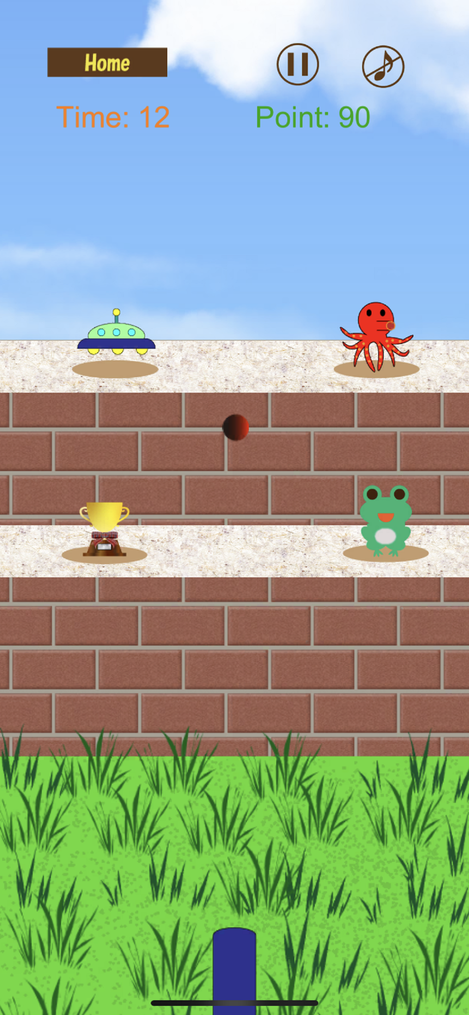 Sunflower (10 points), Flower (10 points), Frog (20 points), Octopus (20 points), Elephant (20 points), Globe (30 points), Car (30 points), UFO (30 points), Coin ( 50 points), trophy (100 points), bomb (-30 points)