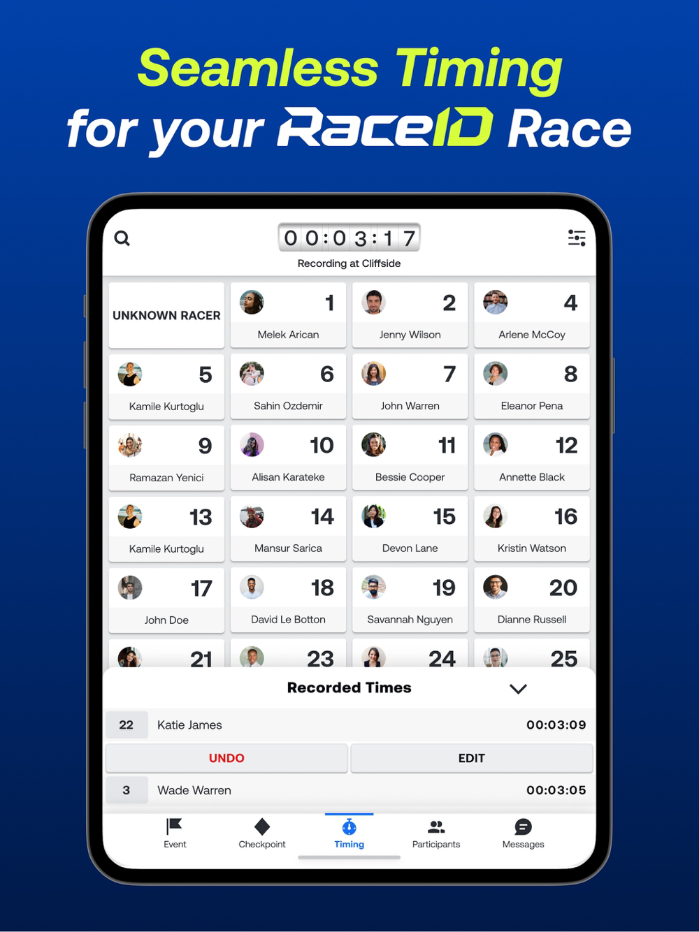 RaceID Timing is a time keeping app for race organizers, with seamless integration with RaceID platform to reduce administration and manual file-sharing.