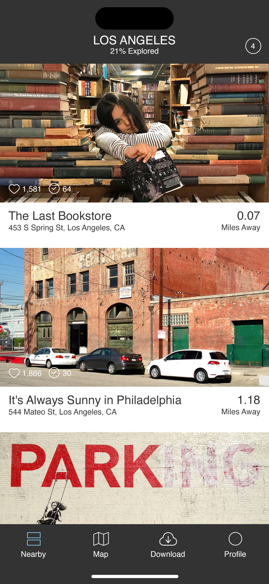 Simply download our offline guide to your phone and, like magic, the app will work when you don't have a cell signal. Check in and save attractions, add new photos, and find the exact locations of all the coolest L.A. spots including the Elysian Park Secret Swing, Weller Court Light Tunnel, Micheltorena Heart Stairs, Sunken City, a real Banksy Mural, and The Last Bookstore - all without having a working internet connection!