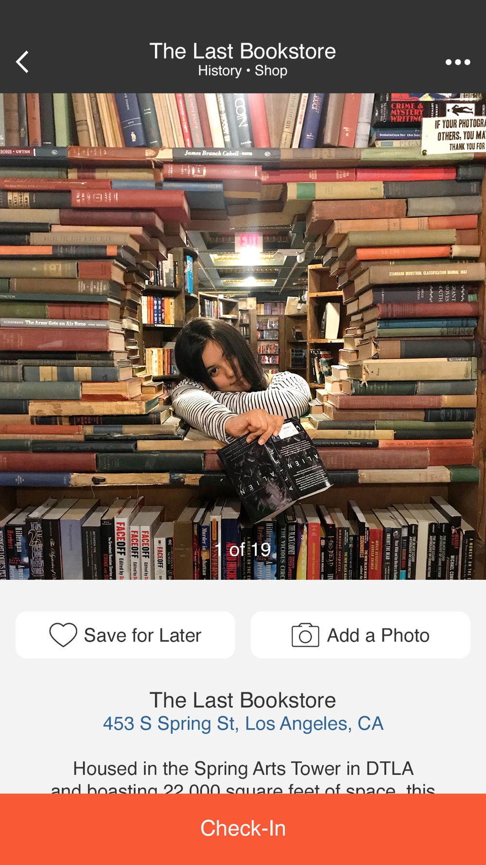 But wait, there's more. Los Angeles by I Heart Travel also lets you suggest new spots, add photos and comments, check in to existing attractions, save attractions so you can visit them later.