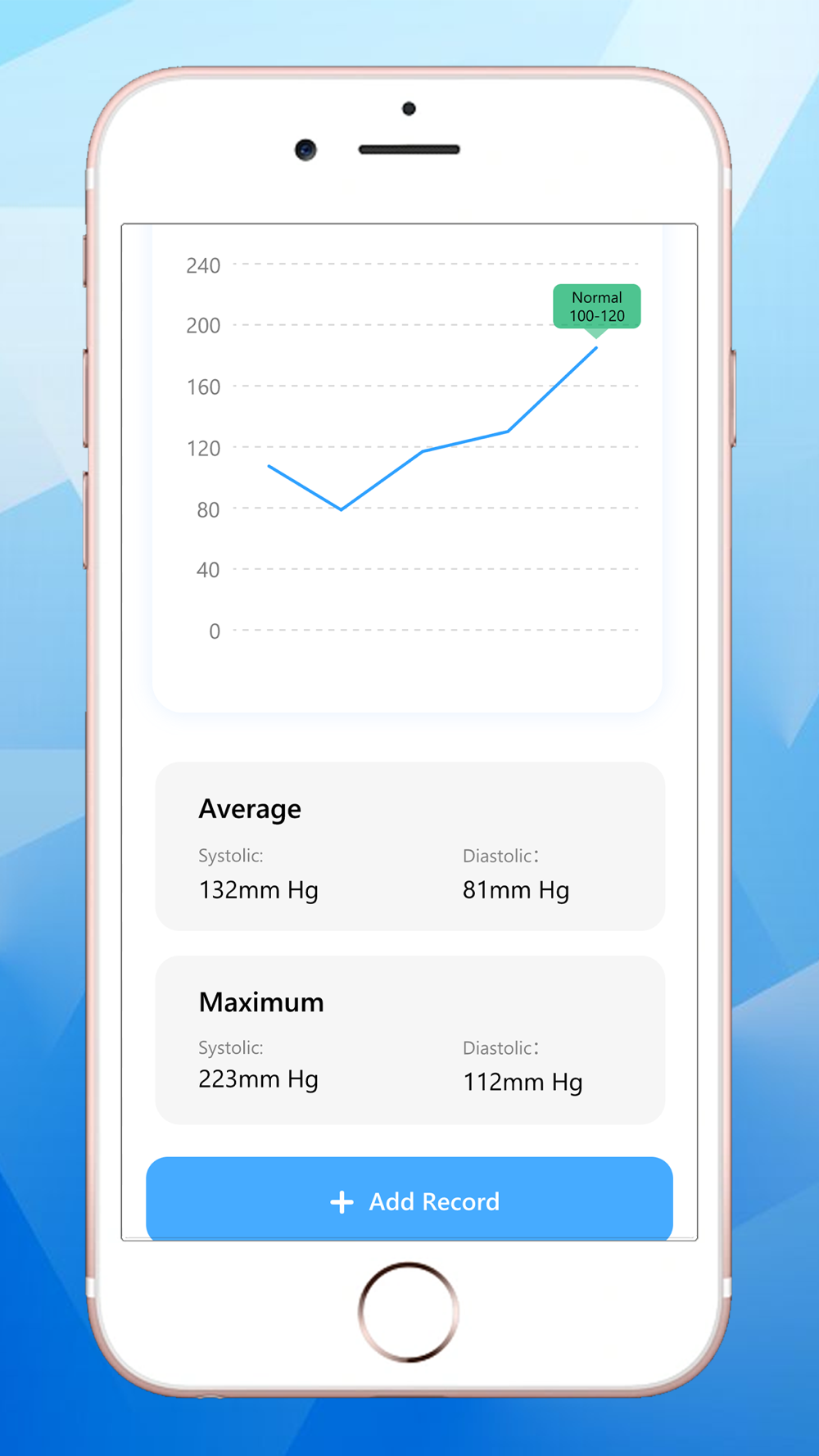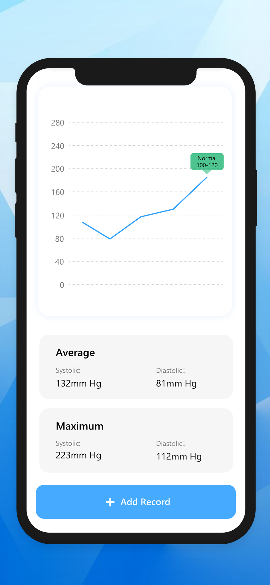 Using the Blood Pressure App, you can grasp your Blood pressure condition fully under different states (lying, sitting, before/after meal, etc.).