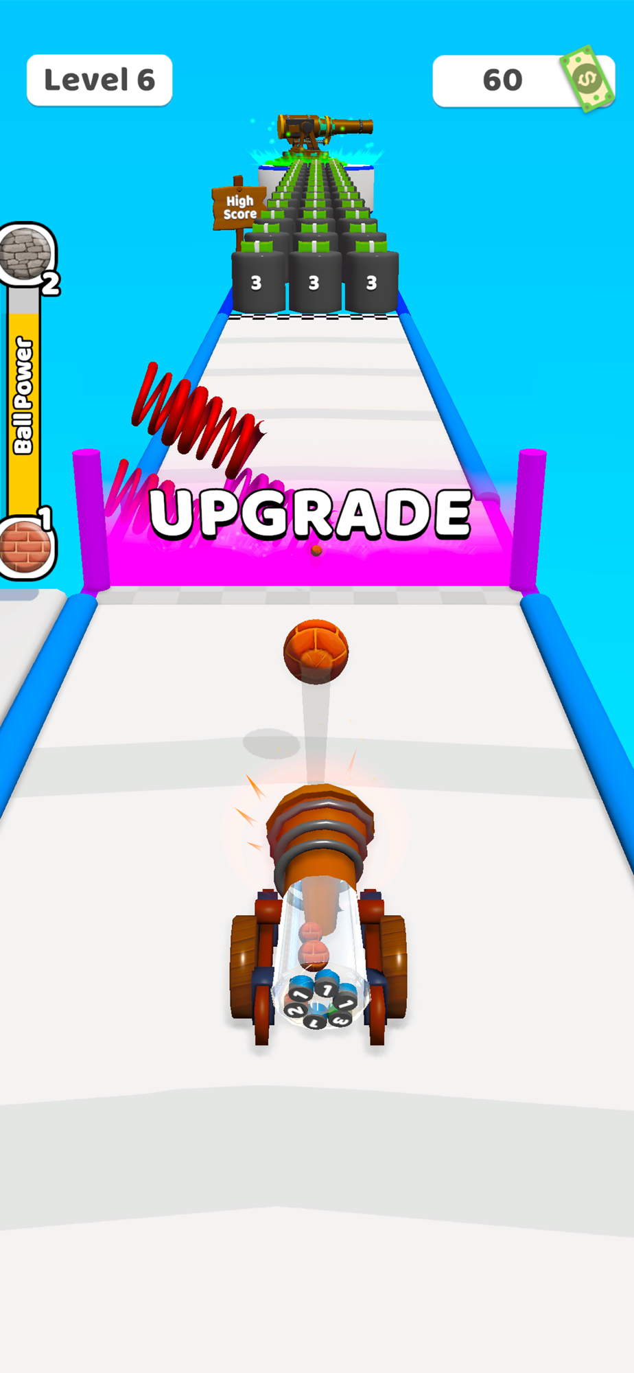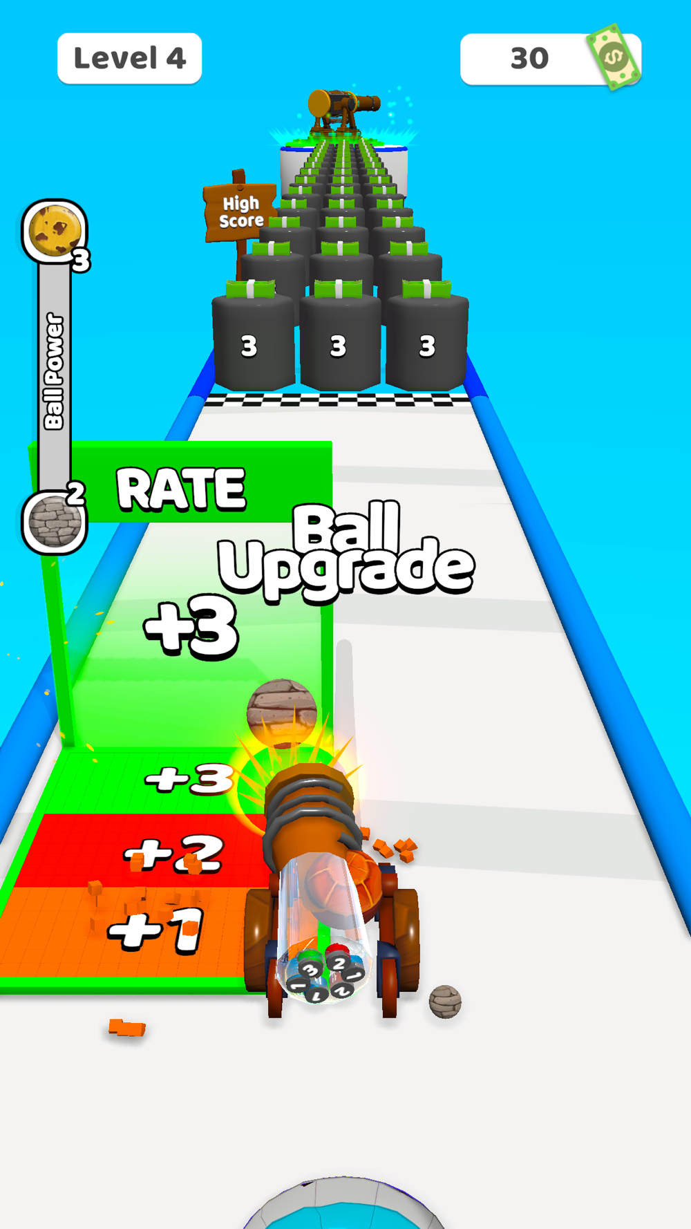 Shoot with your cannon and destroy the ground apart. As you destroy it, you will upgrade your balls. Higher value springs mean longer range. Start smashing the platform!